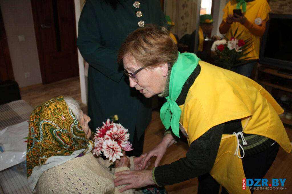 В День пожилых людей заместитель председателя Дзержинского райисполкома Ольга Игнатова, заместитель директора Дзержинского ТЦСОН Елена Вергейчик, а также волонтеры серебряного возраста навестили эту удивительную женщину, недавно переехавшую из Несвижского района к своей дочери.