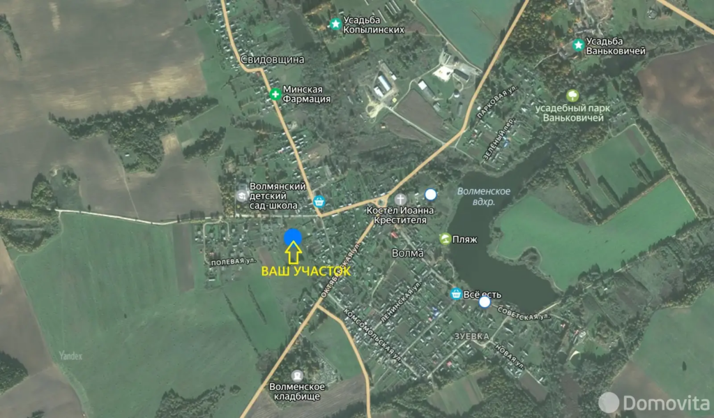 Предложение в центре агрогородка Волма! Продается ухоженный участок правильной прямоугольной формы (20х60 м), площадью 11,5 соток. Все необходимое для строительства и жизни уже рядом: газ и водопровод. Дополнительный бонус для будущих хозяев — готовый погреб на территории.