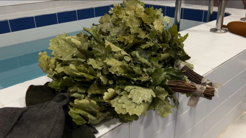 Для имитации русской бани применяем метод парения с вениками. Веники Павел использовал разные: березовые, дубовые, липовые, а также ароматные травяные сборы. С их помощью создавался пар и его правильное распределение по телу – спина, грудь, лицо парились отдельно в классической последовательности.