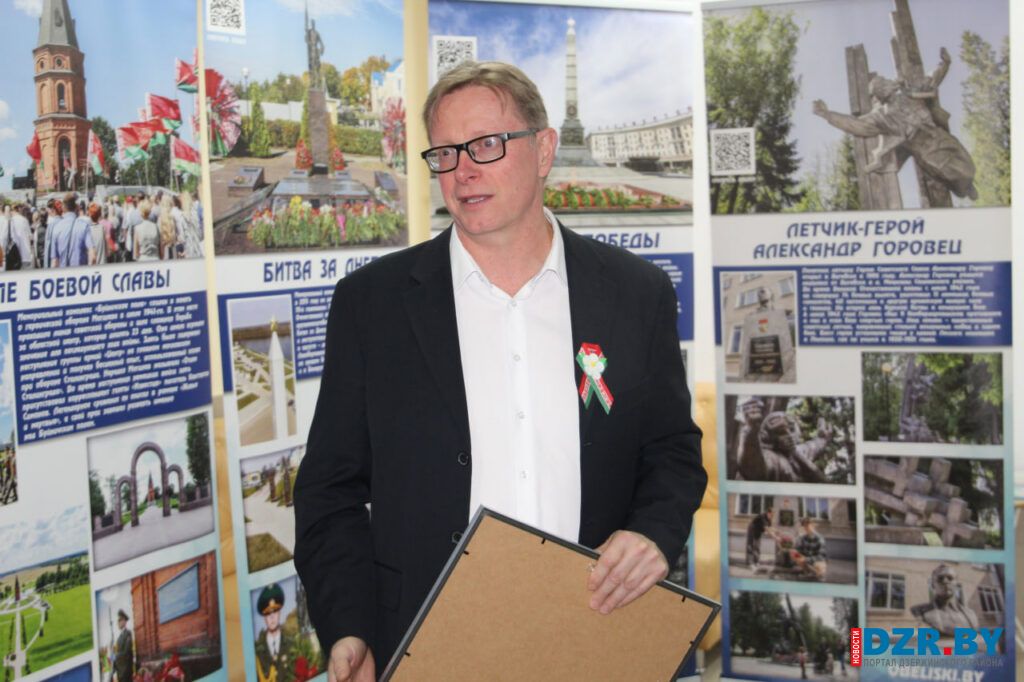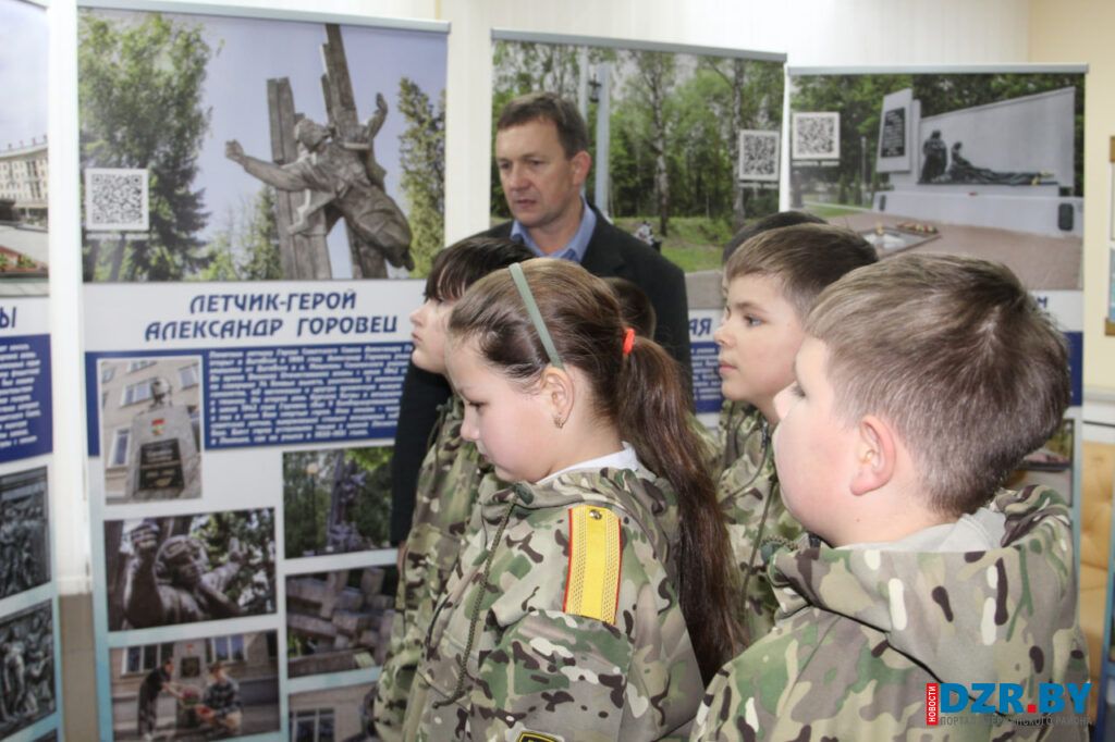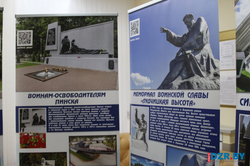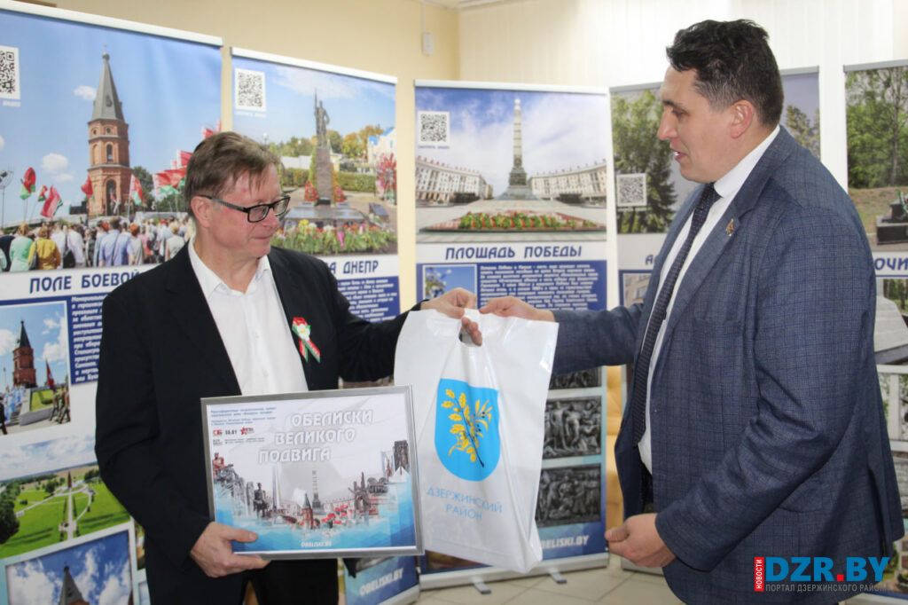 Затем действие переместилось в Дзержинский районный центр культуры и народного творчества, где развернулась выставочная экспозиция «Обелиски великого подвига».
