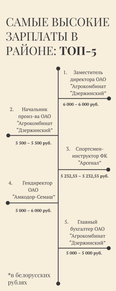 Самая высокооплачиваемая вакансия в регионе на сегодня – должность заместителя директора агрокомбината «Дзержинский» с зарплатой 6 тысяч рублей. На втором месте – ставка начальника производства в той же организации. Зарплата – 5500 рублей. И замыкает тройку лидеров футбольный клуб «Арсенал» с вакансией спортсмена-инструктора и зарплатой в 5232,55 руб.