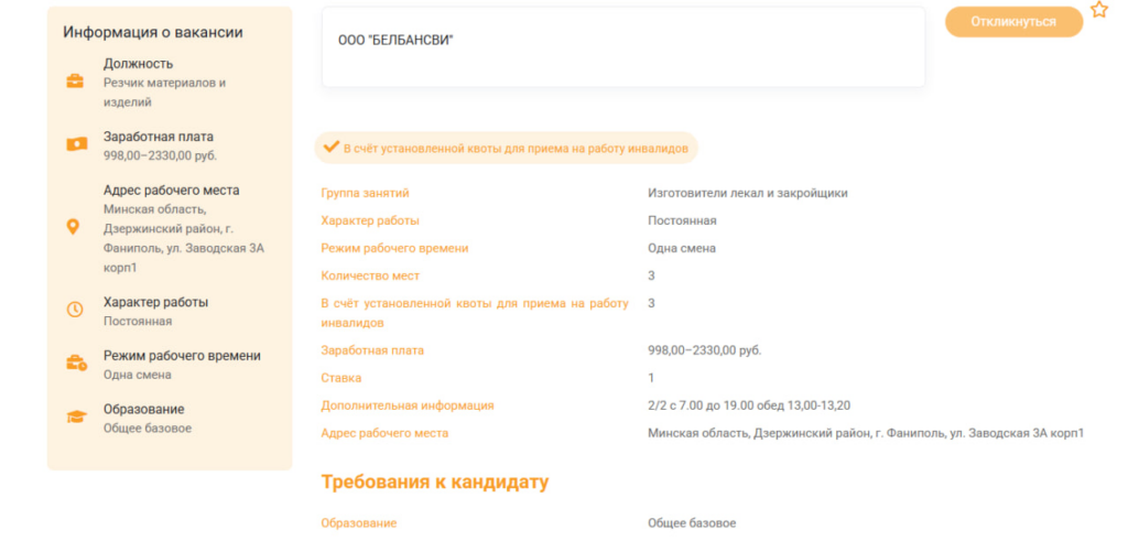 Еще одна впечатляющая разбежка в цифрах – в вакансии резчика материалов и изделий ООО «Белбансви». В организации специалисту обещают зарплату от 988 до 2330 рублей. График работы – два через два с 7 утра до 7 вечера с 20-минутным перерывом на обед.