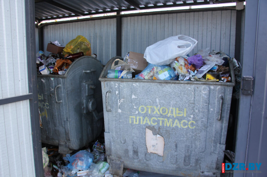 На ул. Пераможцев, 2 контейнеры для ВМР снова заполнены смешанными отходами.