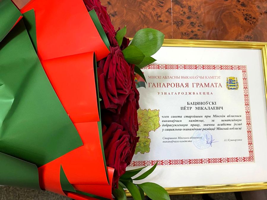 Почетной грамотой Минского облисполкома сегодня награжден Заслуженный работник сельского хозяйства Беларуси Петр Батяновский. В благодарность за значительный вклад в социально-экономическое развитие Минщины — самая высокая награда от губернатора.