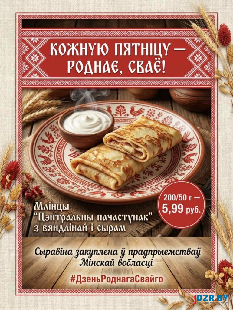 Новинка получила название — Млiнцы «Цэнтральны пачастунак» з вяндлiнай i сырам. Организаторы подчеркивают, что для приготовления используются продукты от производителей Минской области.