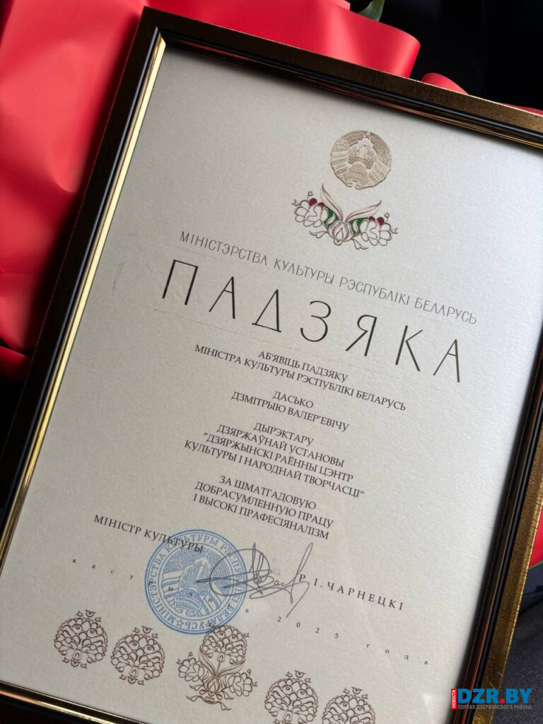 Высокой оценки удостоился и руководитель учреждения. Благодарность Министра культуры Республики Беларусь была выражена директору Дзержинского районного Центра культуры и народного творчества Дмитрию Досько.