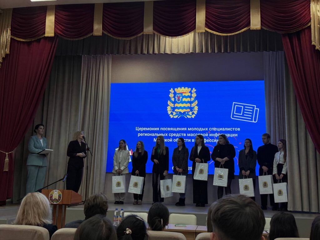 Также состоялось посвящение в профессию 14 молодых специалистов, пришедших в августе на работу в региональные СМИ Минской области. Начинающие журналисты получили подарки от