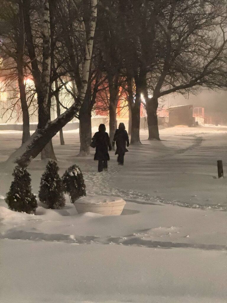 Между восемью и девятью вечера движение в центре города было активным, но пешеходов — раз-два и обчёлся. Самые отважные выгуливали собак или срочно бежали в магазин. Кое-где, по большей части в частных секторах, жители расчищали улицы и территории у дома.