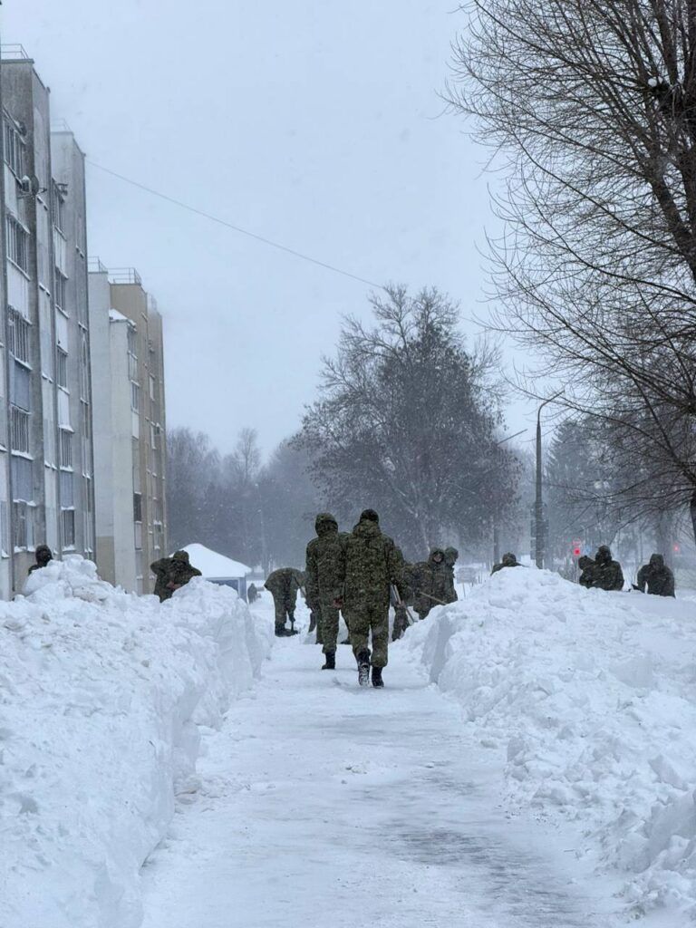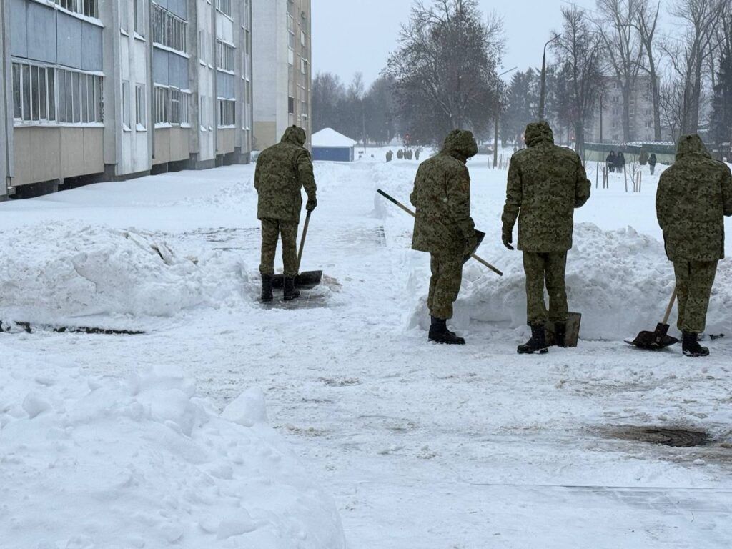 В числе первых, кто вышел на помощь городу, были военнослужащие войсковой части 1463. Около 50 человек встали в один строй с другими службами, чтобы вместе бороться со снежными заносами. Силы сосредоточили на улицах Чкалова-Минская.