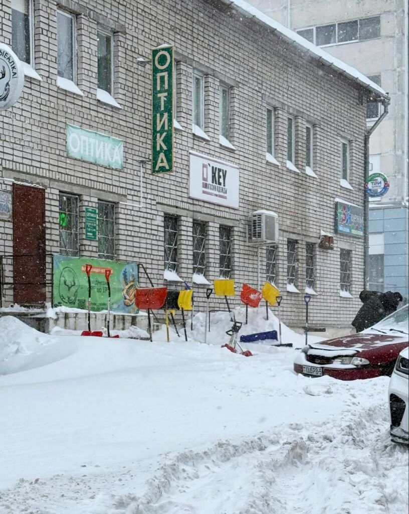 Зато в городе оперативно отреагировали на сложившиеся условия: тут и там появились точки продажи снегоуборочного инвентаря.