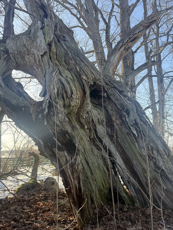 К сожалению, сегодня часовню нельзя назвать даже памятником старины. Скорее, это призрак былого величия. До наших дней дожил лишь один уцелевший фрагмент каменной кладки некогда грандиозного сооружения. Рядом с руинами стоит молчаливый страж – старое дерево. В его обугленных ветвях читается драма: несколько раз в него била молния, оно горело, но выстояло. Дерево буквально подпирает остатки усыпальницы, словно не давая истории рухнуть окончательно.