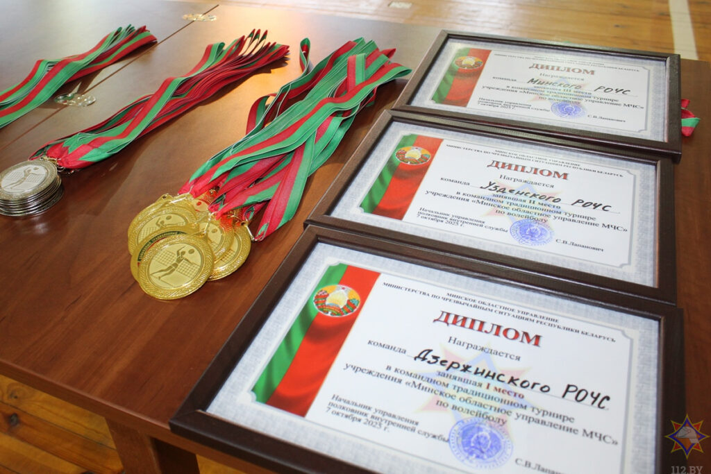 В напряженной борьбе дзержинские спасатели-волейболисты в очередной раз продемонстрировали свой профессионализм и завоевали титул победителя, «серебро» – у спасателей из Узды, третьими стали спортсмены из Минского райотдела по чрезвычайным ситуациям. Поздравил победителей и вручил дипломы, кубки и медали первый заместитель начальника Минского областного управления МЧС Виталий Пекурин.