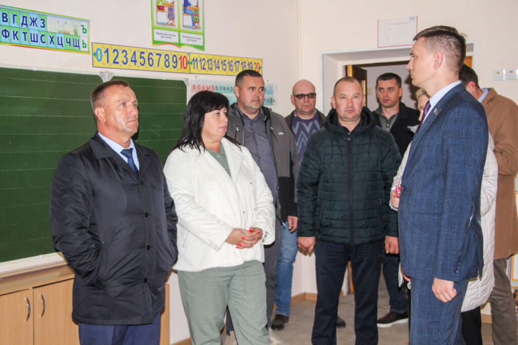 В рамках рабочей поездки Александр Кохан посетил Станьковскую среднюю школу имени Марата Казея, где в настоящий момент подходят к завершению работы по капитальному ремонту. В учебном заведении обновлен фасад, произведена замена кровли и оконных блоков, отремонтирована часть учебных кабинетов. Учебный процесс начнется в новом здании со второй четверти.
