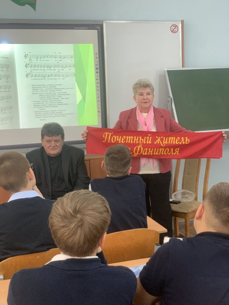 В средней школе №1 прошла тёплая встреча учащихся с людьми, которые создали герб и гимн города Фаниполя.