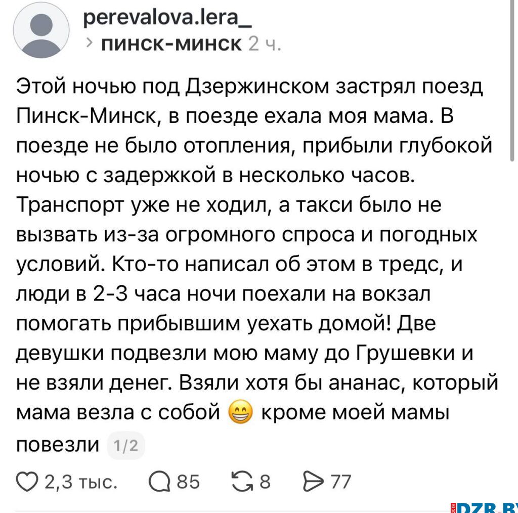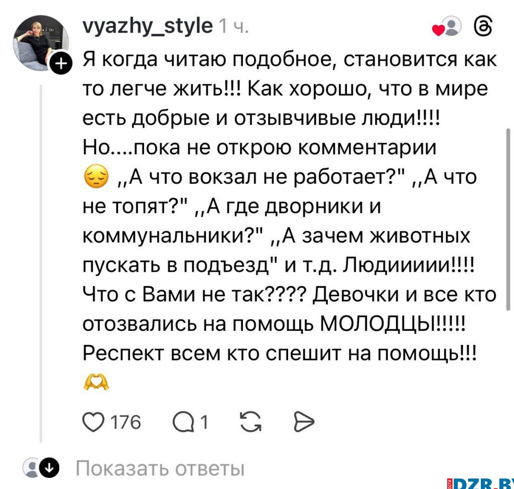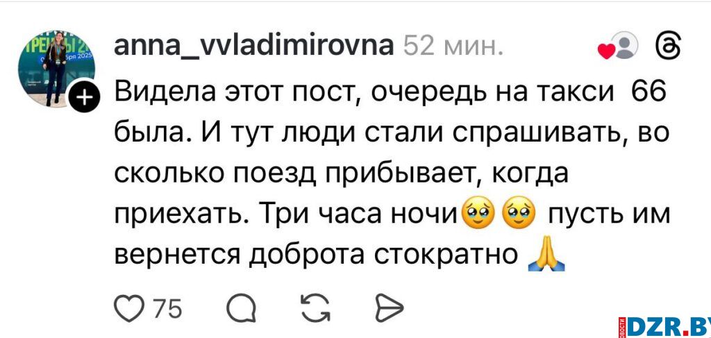 Пока коротали время, кто-то из пассажиров поделился случившимся в Threads. И тут включился главный инстинкт всех белорусов — взаимовыручка!