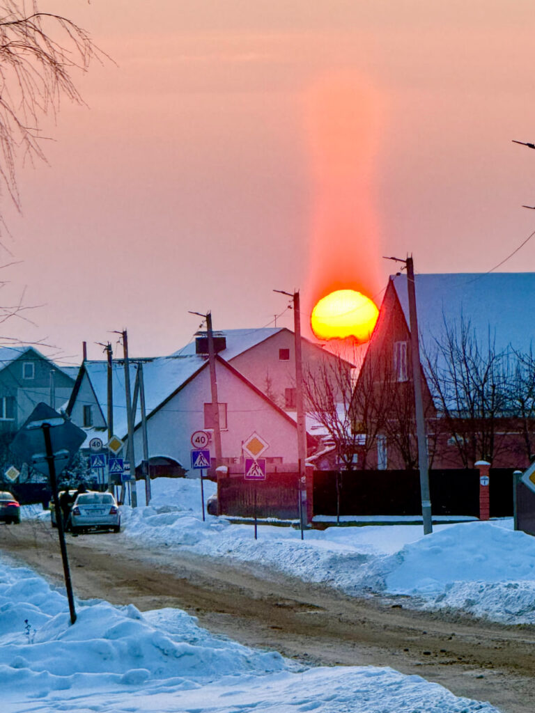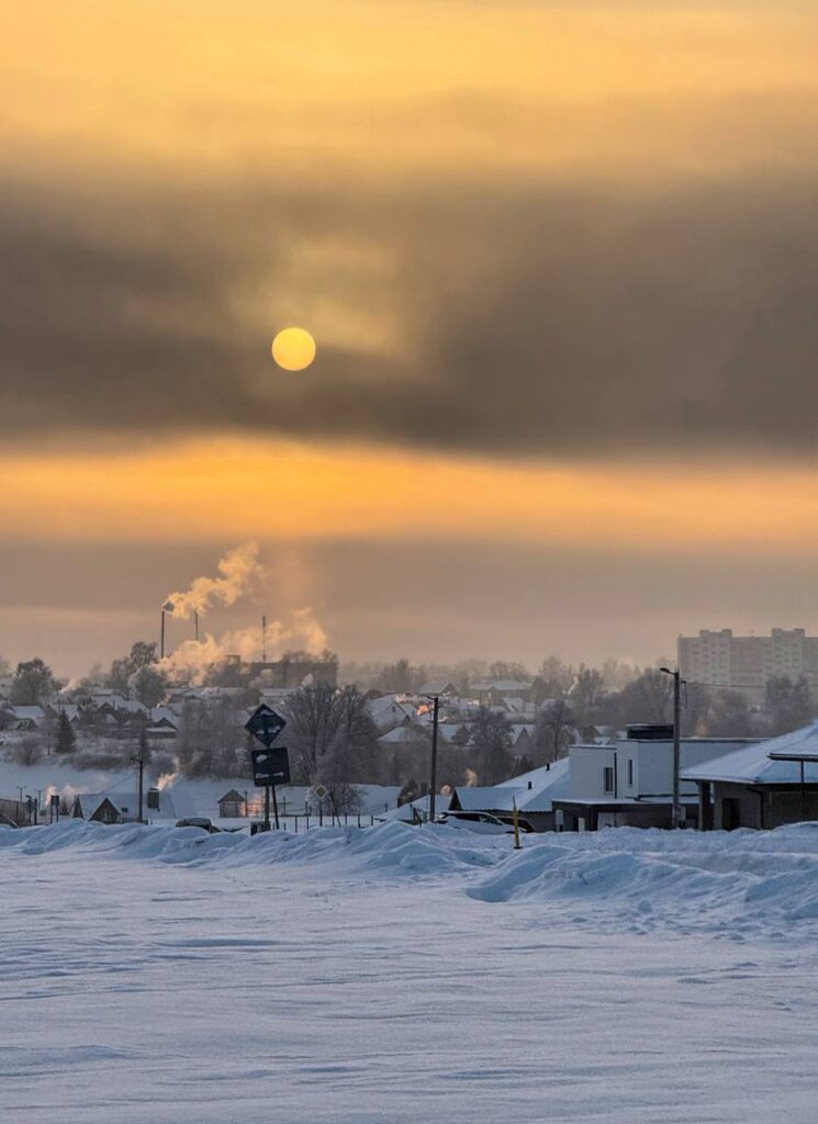В один январский день над крышами домов вдруг вырисовался яркий световой столб. Это тот самый солнечный столб, когда лучи заходящего солнца отражаются от плоских ледяных кристаллов в воздухе и превращают обычный вечер в чуть сказочную сцену. Прохожих почти нет, слышно редкое поскрипывание снега и отдаленный звук машин – обычная жизнь маленького городка на фоне необычного природного явленияКонечно, главное событие этой зимы – пришедший к нам циклон «Улли». Нагрянул буквально – как снег на голову! Основной удар на себя взяли коммунальные службы. Уж они точно надолго запомнят январь-2026!Снег + скорость = идеальная формула отличной зимней прогулки для детворы! Момент словили во время народных гуляний на празднике «Каляды» в ДзержинскеКак думаете, коты оценили снегопады и морозы? Судя по выражению мордочки пушистого гостя, явно ожидающего угощения, – не особоЗимним вечером деревенский покой нарушила лишь одна гостья. Утка-путешественница, словно найдя тихую гавань, уселась на снегу в полной уверенности в своей безопасности. Трогательный кадр тишины и доверияВсего миг – и невесомый мыльный пузырь, коснувшись морозного воздуха, застывает хрустальным украшением. Мороз и вправду кудесникВот он, зимний парадокс: мощный зубр, символ дикой природы, стоит на АЗС под Дзержинском под снежным покровом. И его величественная спина, покрытая снегом, – точь-в-точь суровые заснеженные пики