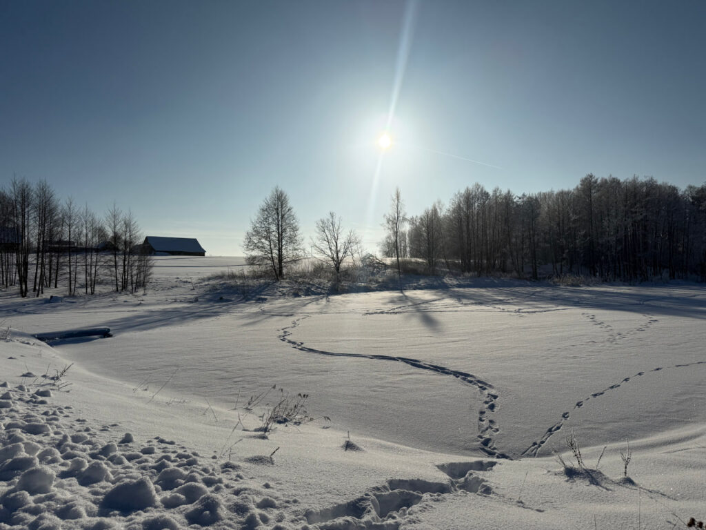 Одна из примечательных локаций деревни – живописное озеро рядом с дорогой. В солнечный морозный зимний день сельчане выходят даже на лед – прогуляться и проверить его на крепость.