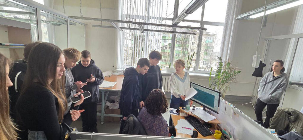 Первым пунктом программы стало проектировочное бюро. Здесь учащимся показали, как современные технологии приходят на помощь моде. Оказывается, прежде чем игла сделает первый стежок, художники и конструкторы трудятся над лекалами в специальных программах. Ребята с удивлением узнали, что каждая миллиметровая мерка будущей рубашки высчитывается с математической точностью.