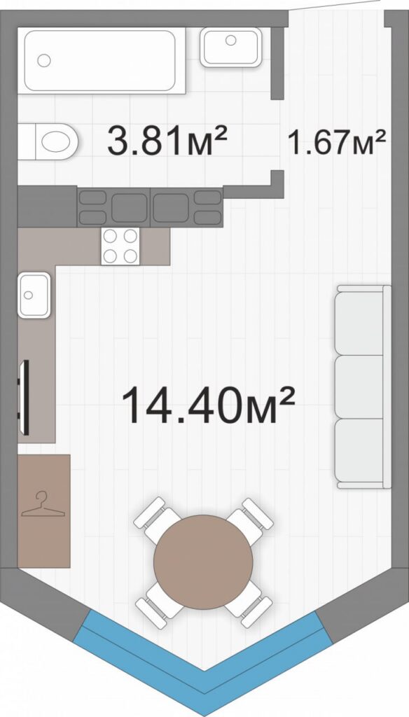 - Инвесторы, рассчитывающие на аренду. Микроформат идеален для сдачи. Такая студия — готовый аналог комнаты в хостеле, но с отдельным санузлом. Арендные ставки в Фаниполе очевидно ниже столичных.