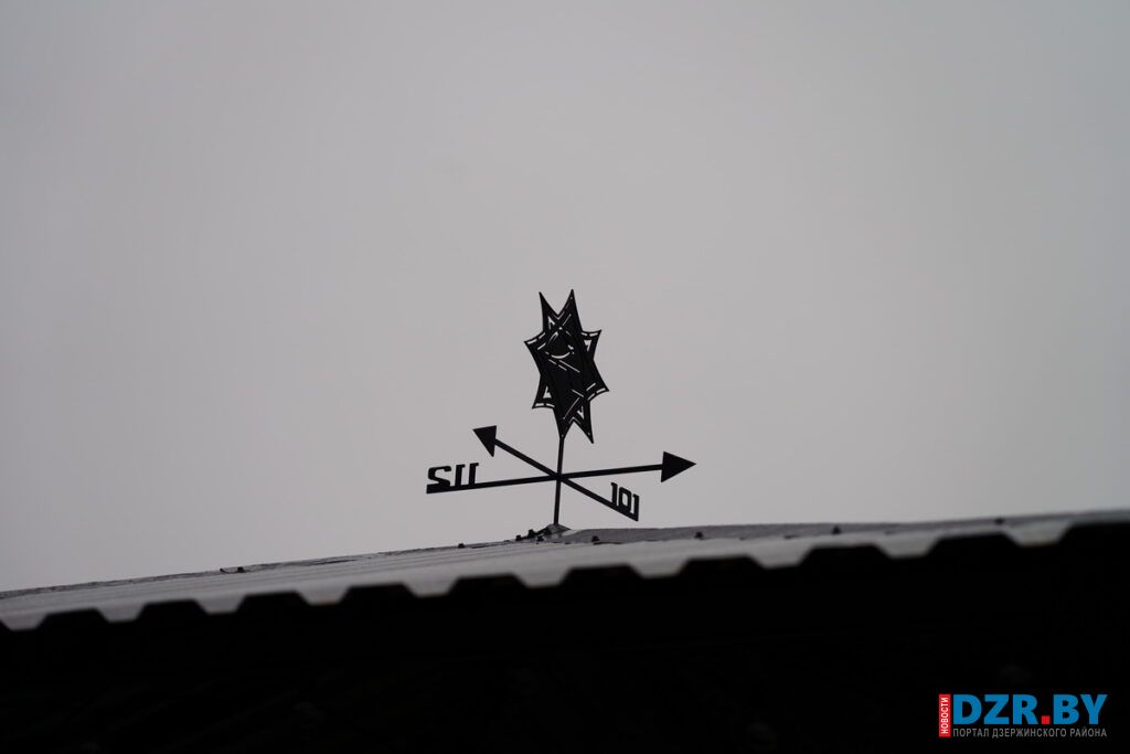 В центральной части беседки расположилась табличка со сводом правил безопасности, а на самой крыше разместился флюгер в виде эмблемы МЧС и с номерами службы спасения «101» и «112».