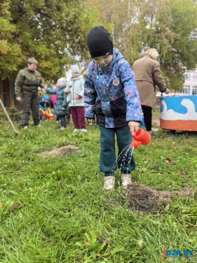 Накануне главного события воспитанники Дошкольного центра развития ребенка г. Дзержинска вместе со специалистами Дзержинской районной инспекции природных ресурсов и охраны окружающей среды вышли на посадку деревьев на территории своего учреждения.