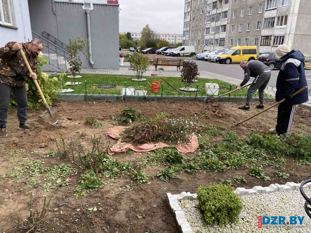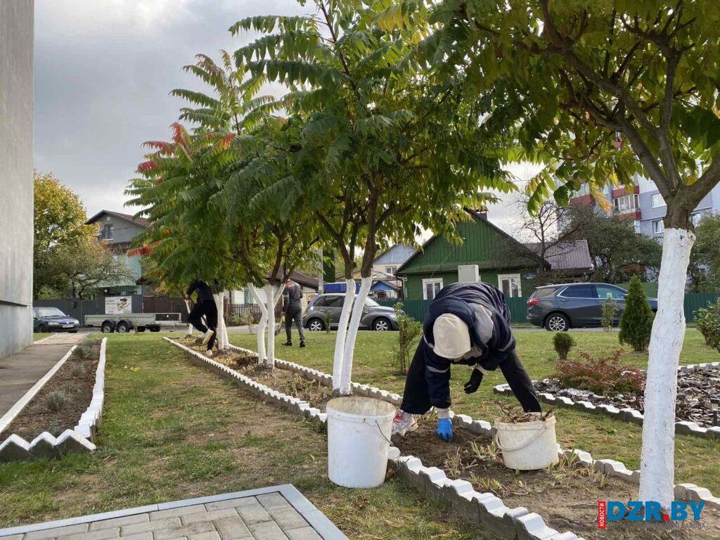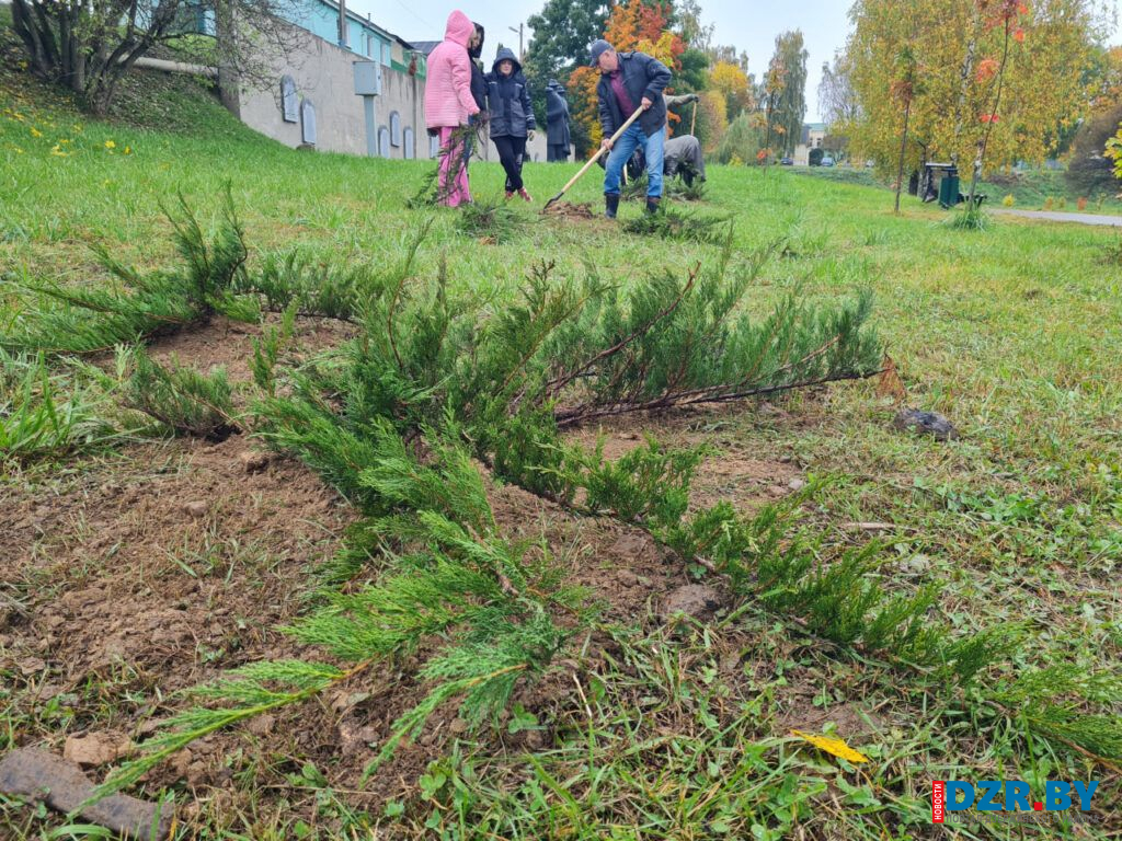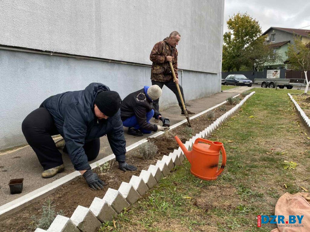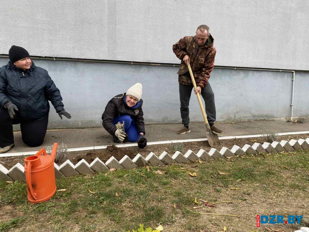 Работники Дзержинского сельисполкома в этот день вышли на посадку декоративных растений, чтобы благоустроить территорию у здания своей администрации.