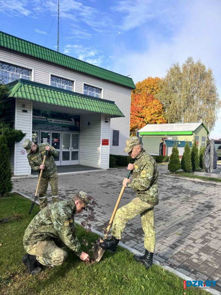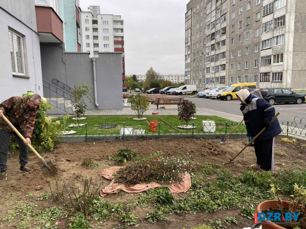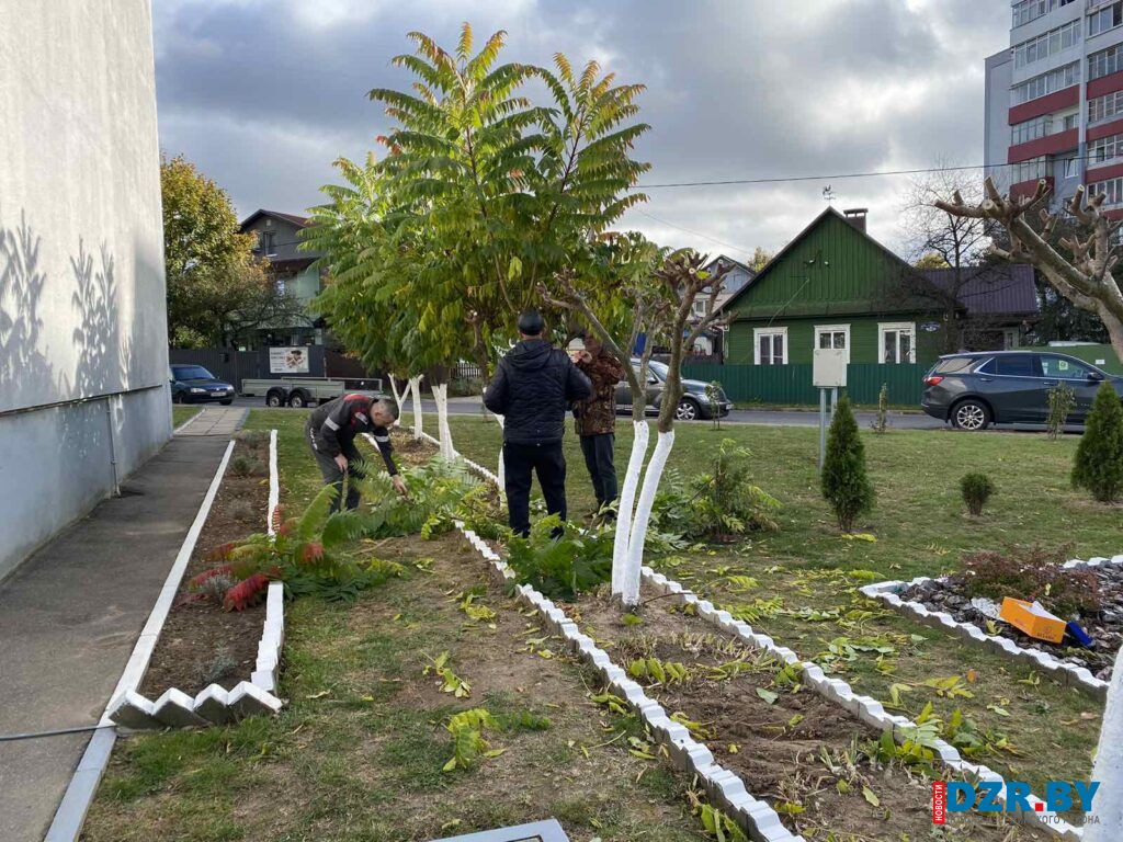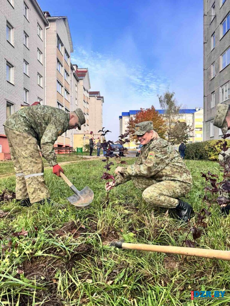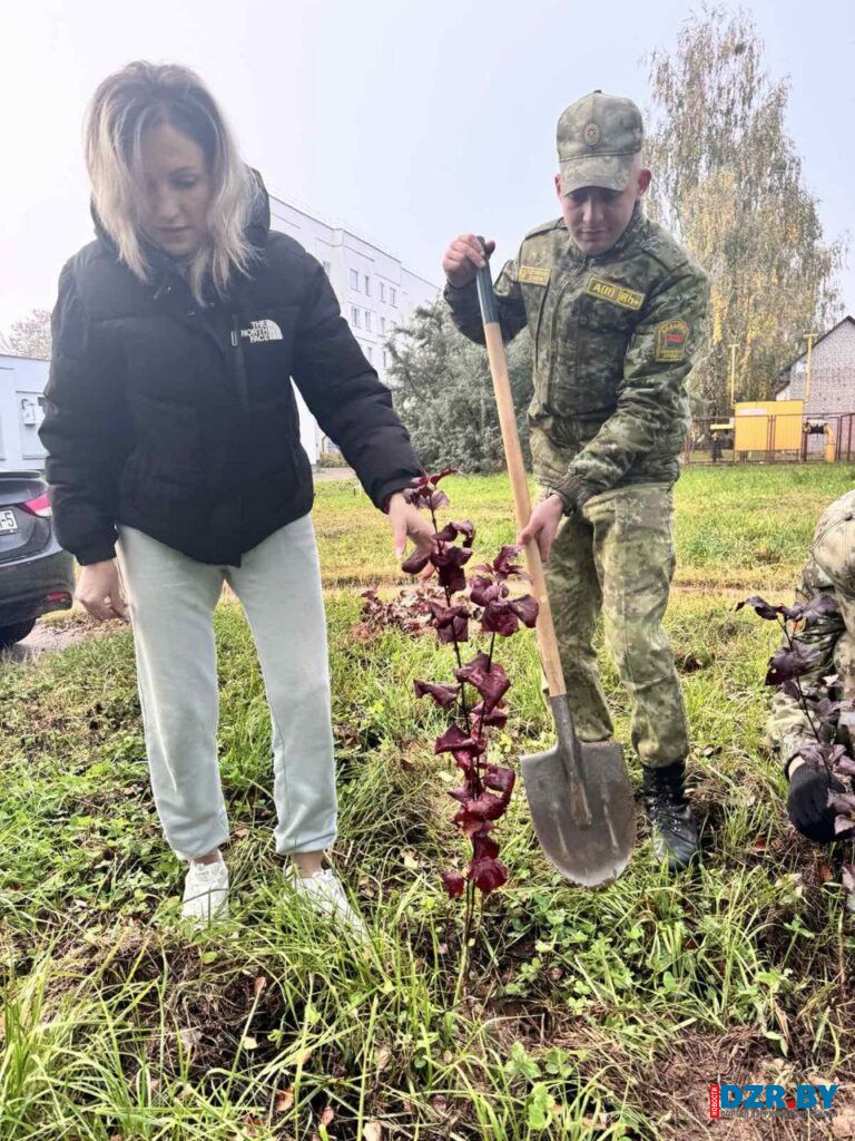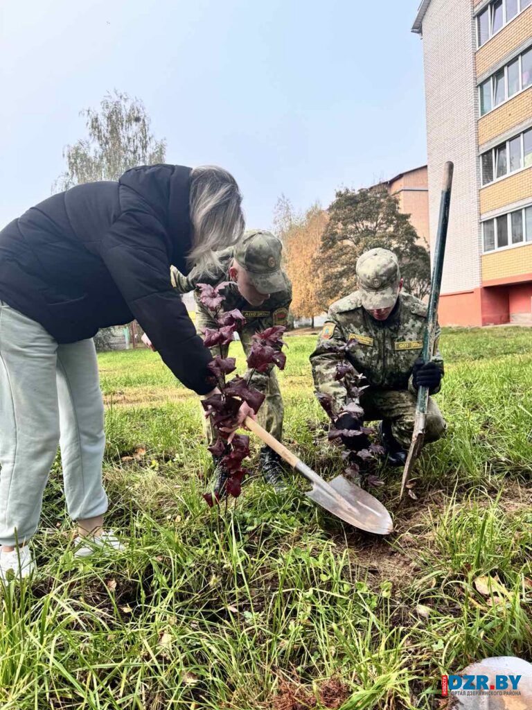 Работники Дзержинского сельисполкома в этот день вышли на посадку декоративных растений, чтобы благоустроить территорию у здания своей администрации.