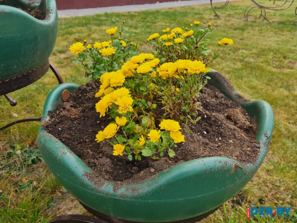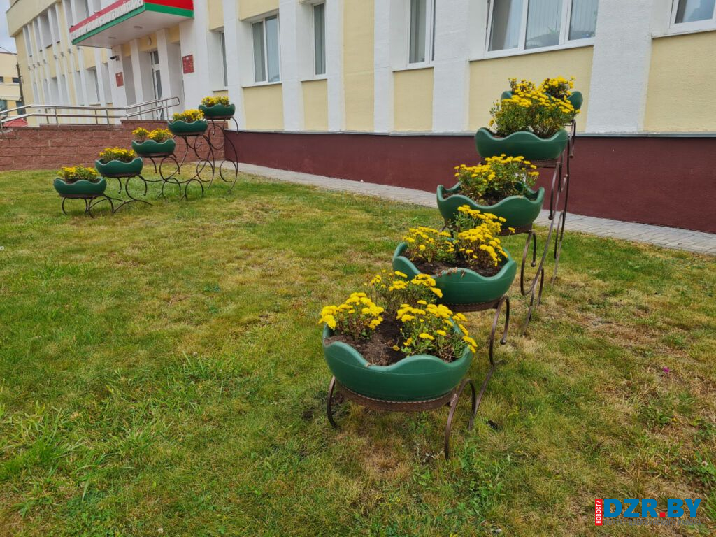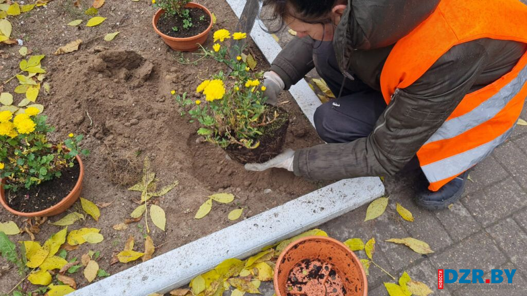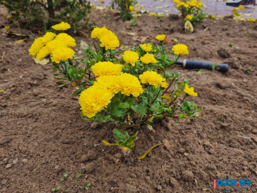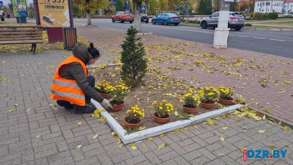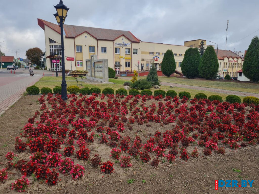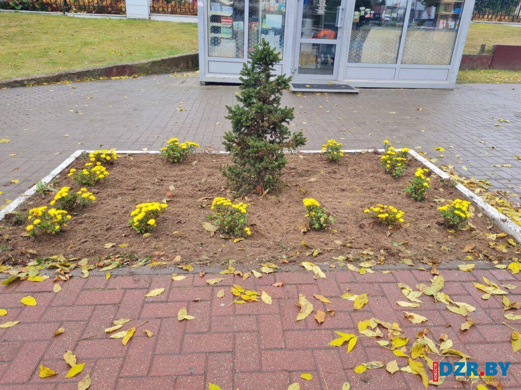 Возле остановочного пункта на площади Дзержинского и у входа в здание райисполкома теперь красуются кусты золотистых хризантем, добавляя ярких красок в осенний пейзаж.