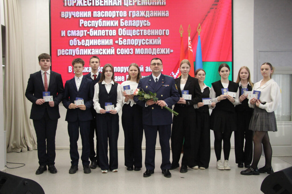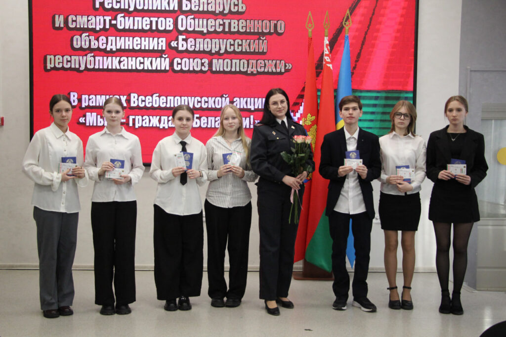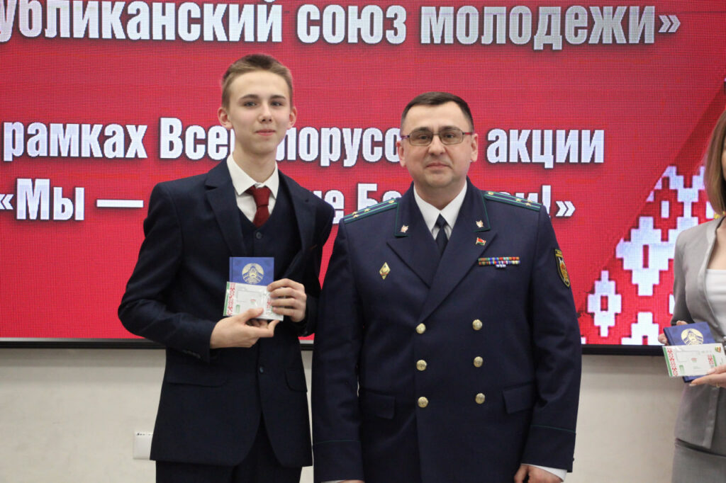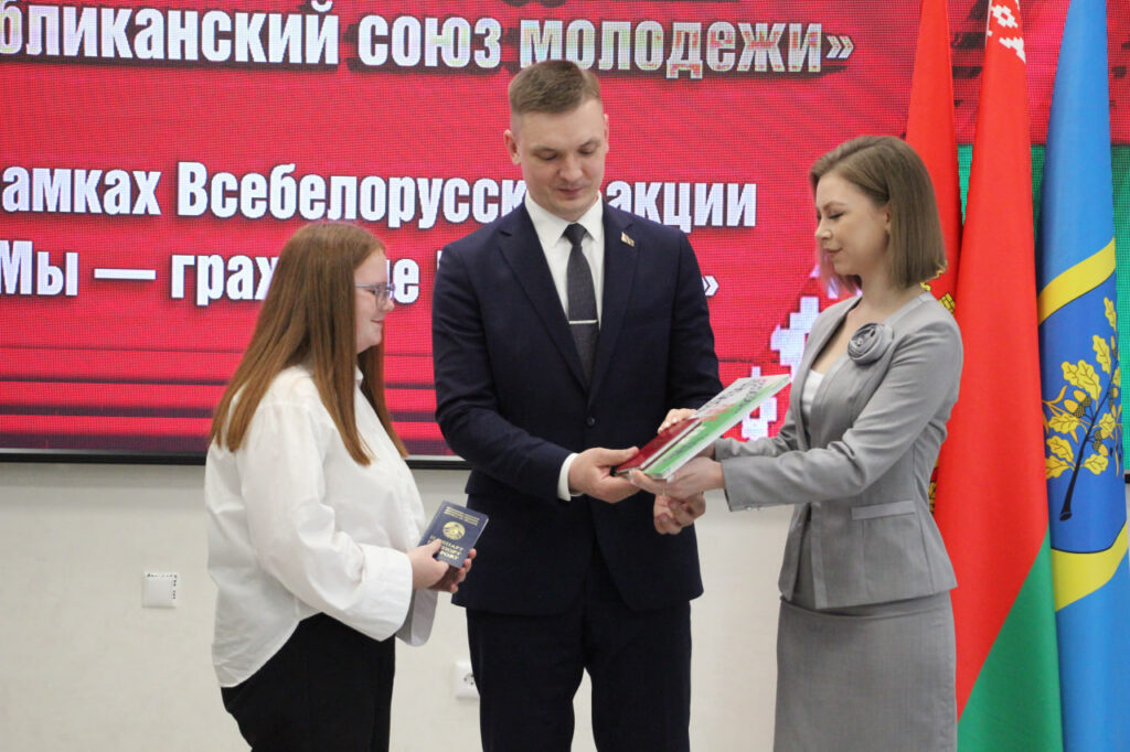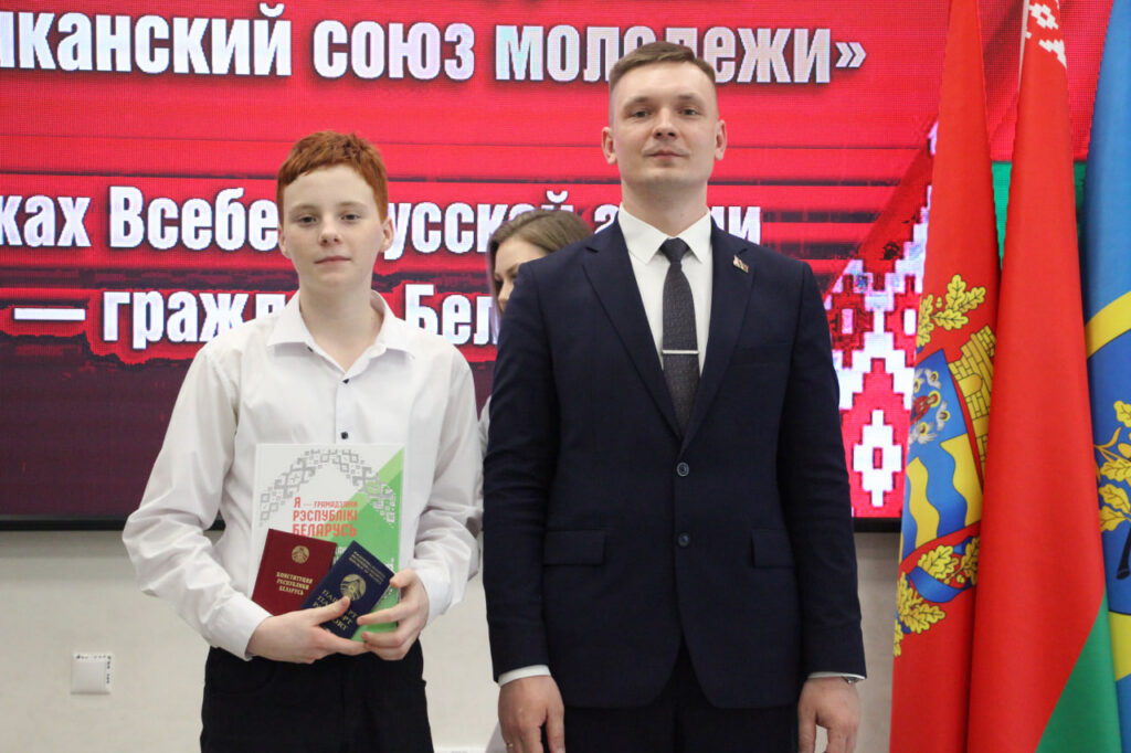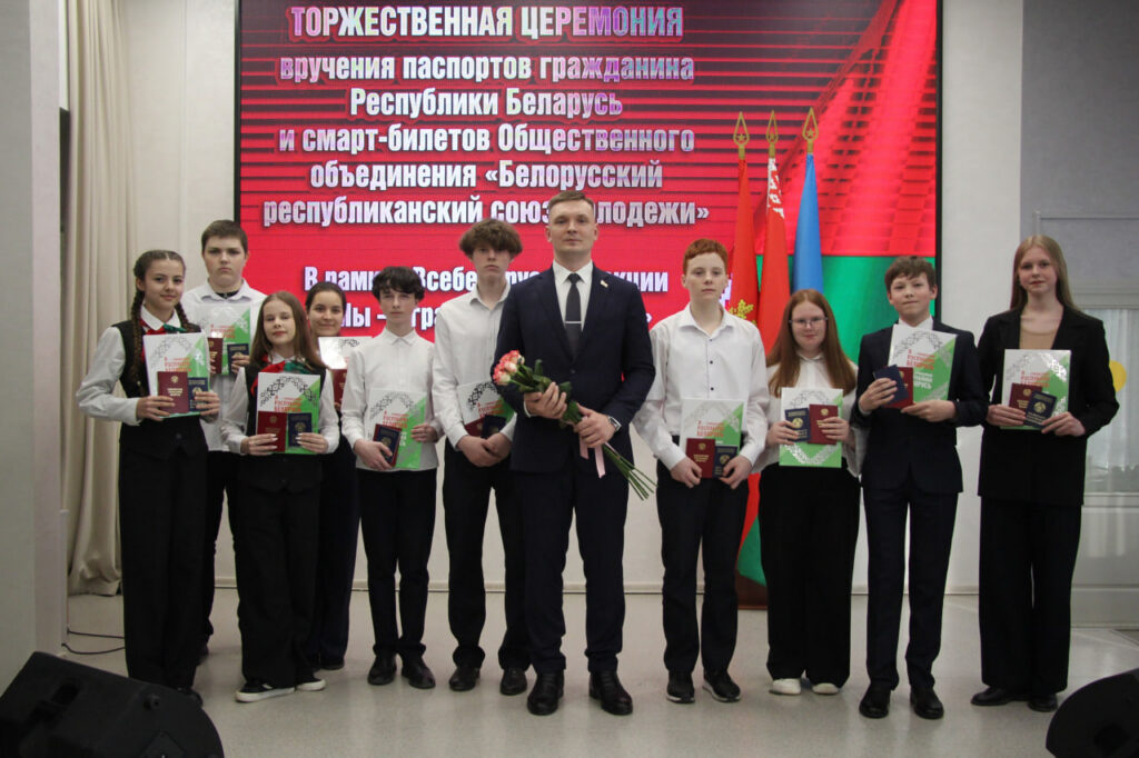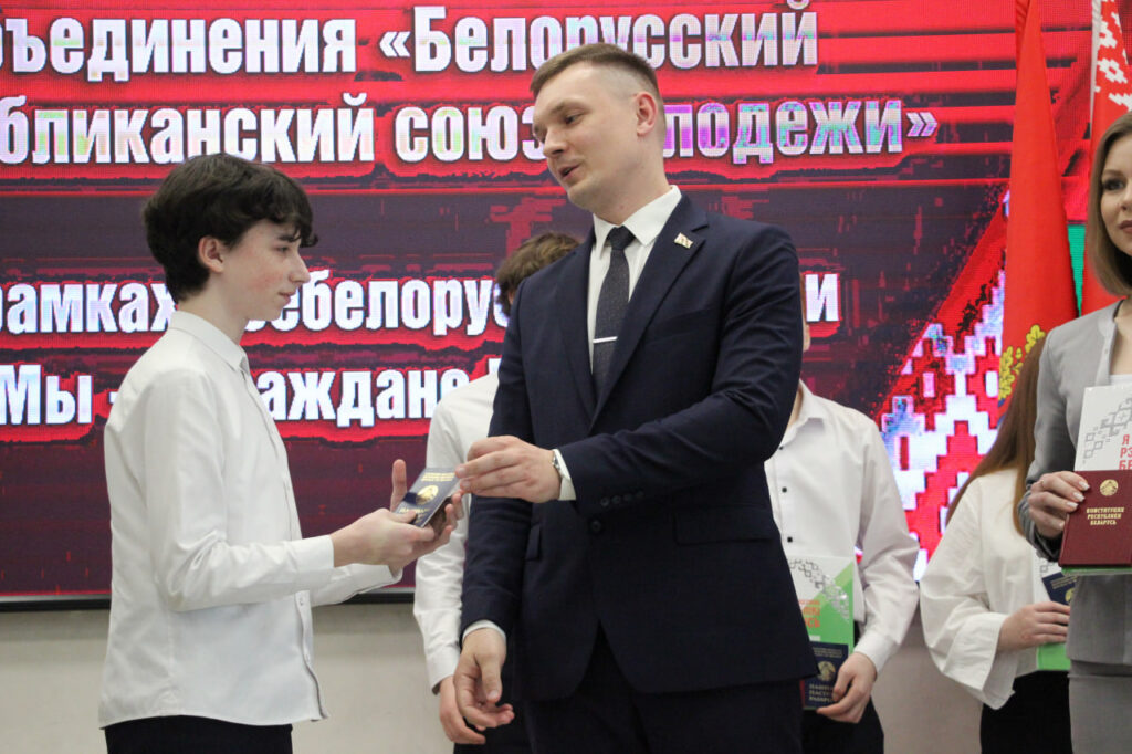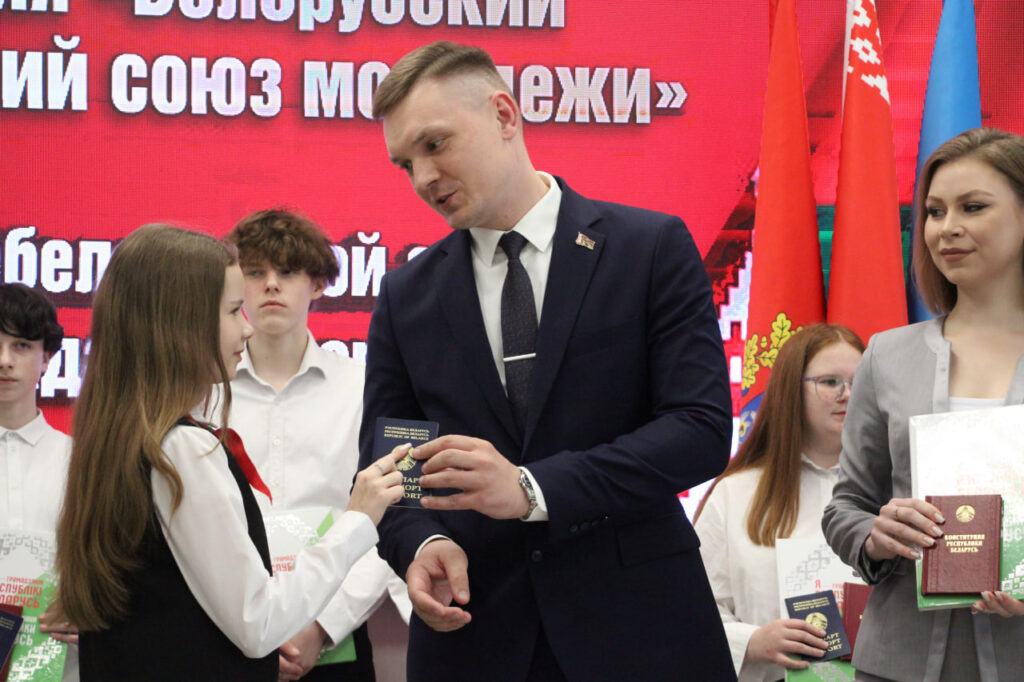 Вместе с паспортом школьники получили в подарок членские билеты БРСМ, а также Конституцию страны.