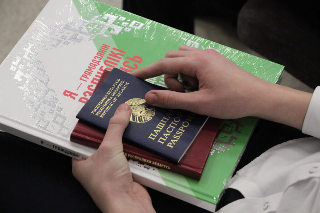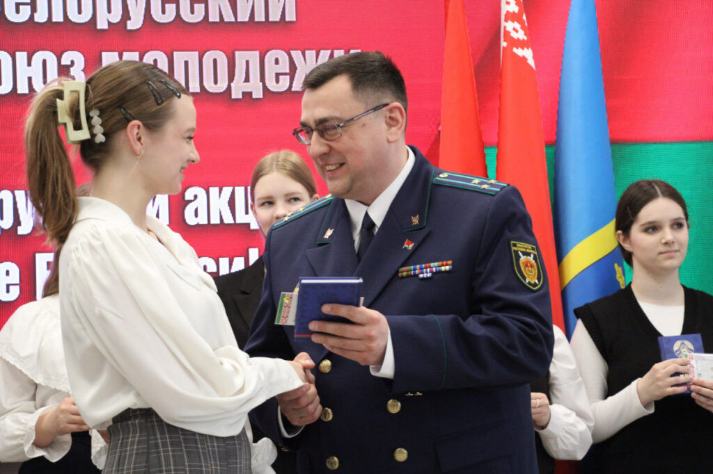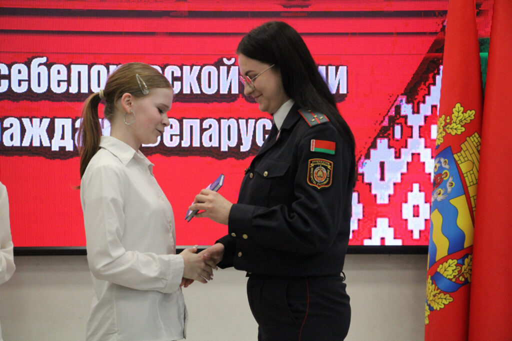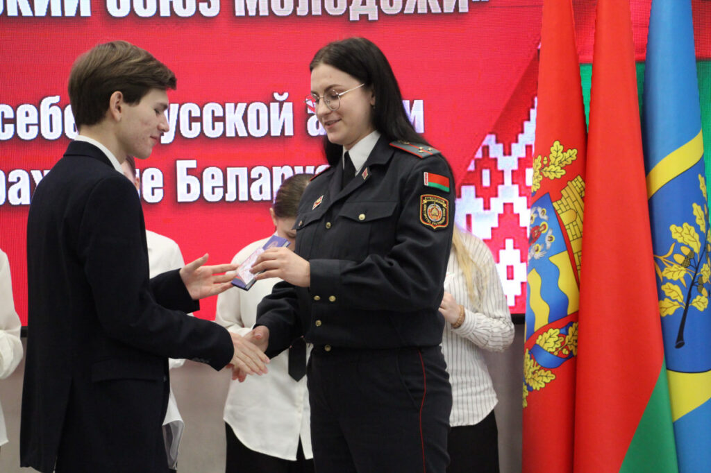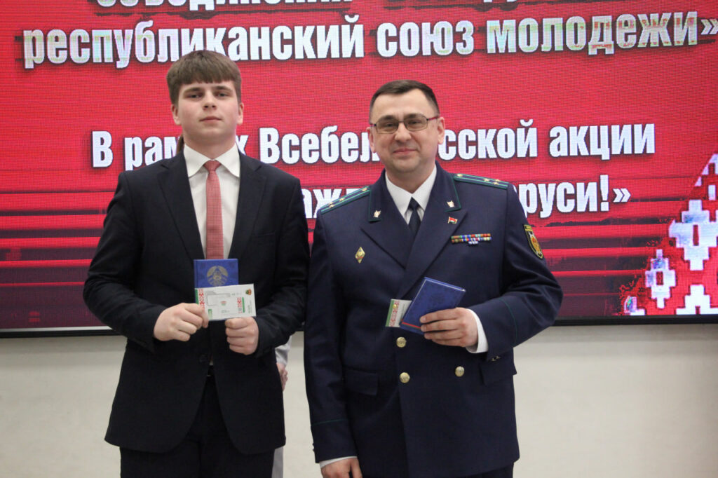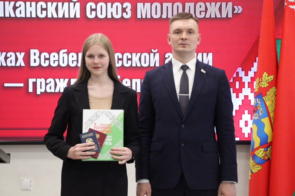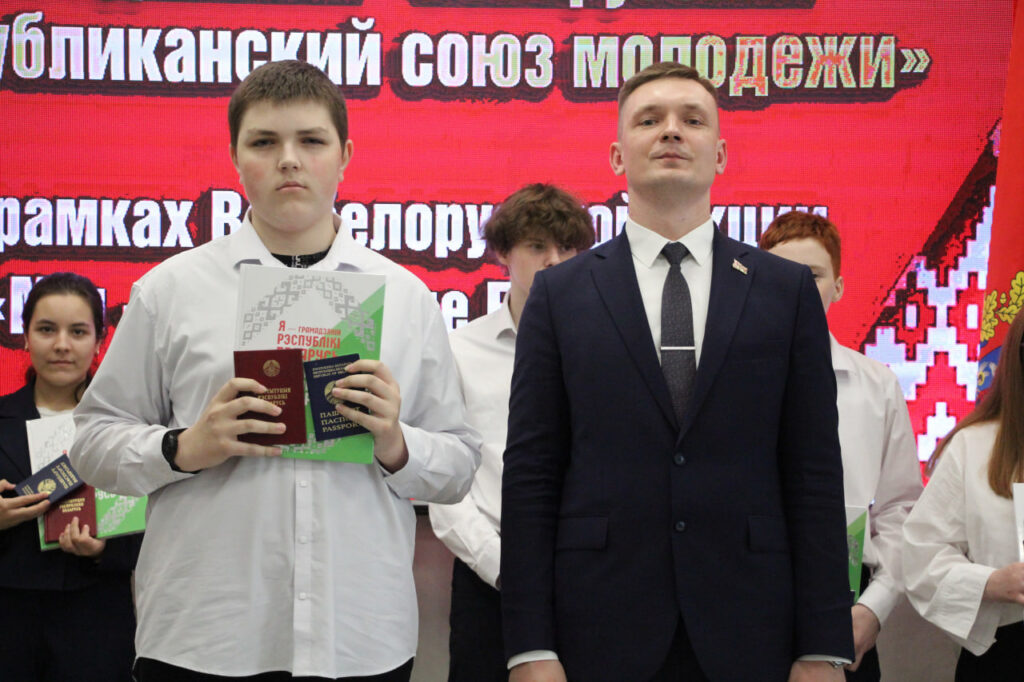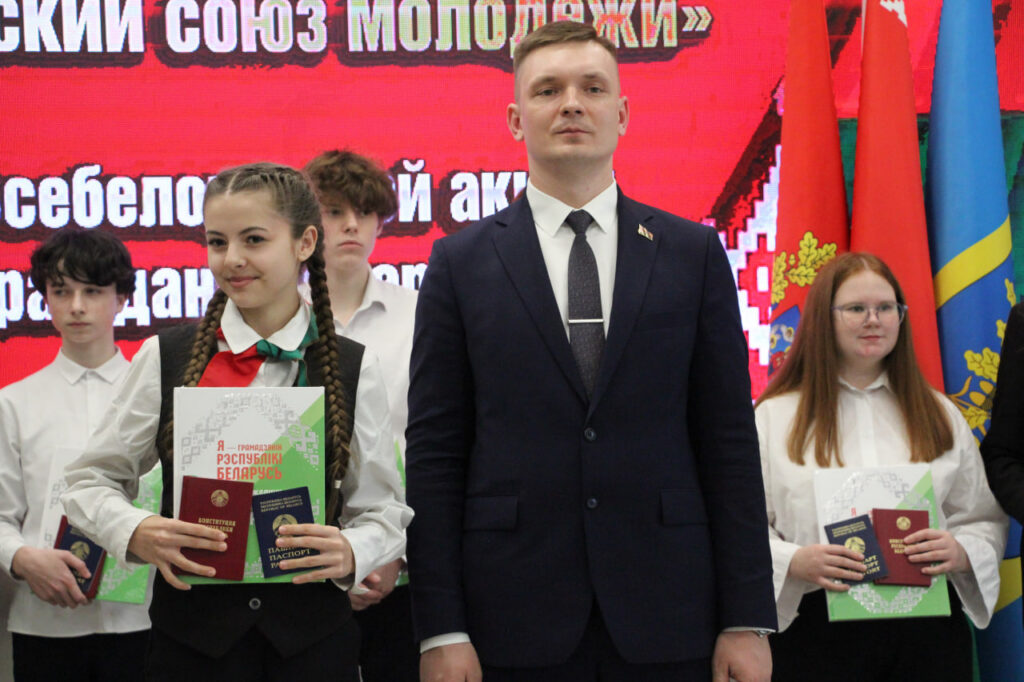 Вместе с паспортом школьники получили в подарок членские билеты БРСМ, а также Конституцию страны.