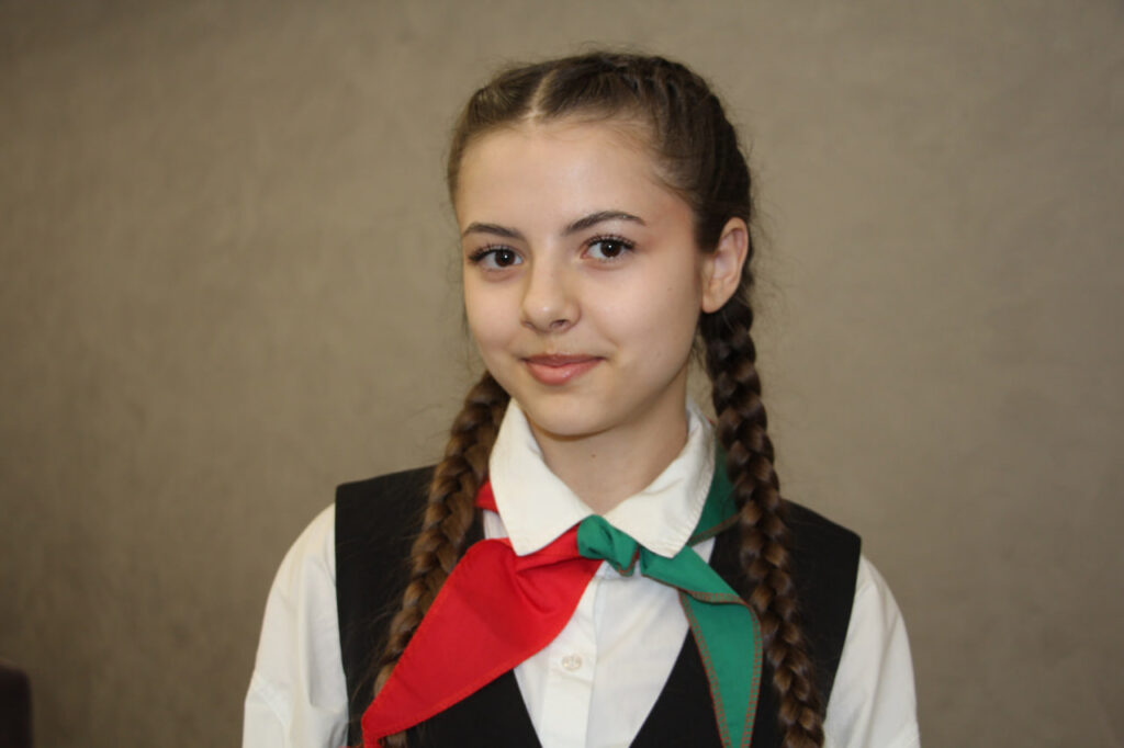 — Я активно участвую в жизни школы, хорошо учусь. Сейчас готовлюсь к олимпиаде по белорусскому языку. Моя главная творческая страсть — музыка: я занимаюсь в образцовом вокальном ансамбле «Песенка», обладательница дипломов первой, второй и третьей степени районных, республиканских и даже международных конкурсов.