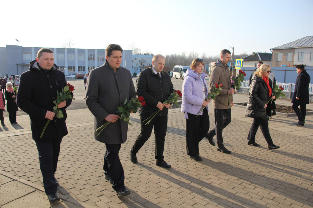 12-13 марта Дзержинский район принимает делегацию Комиссии Парламентского Собрания по науке и образованию Союза Беларуси и России. Сегодня одним из первых пунктов программы стало возложение цветов к мемориальному комплексу в аг. Скирмантово.