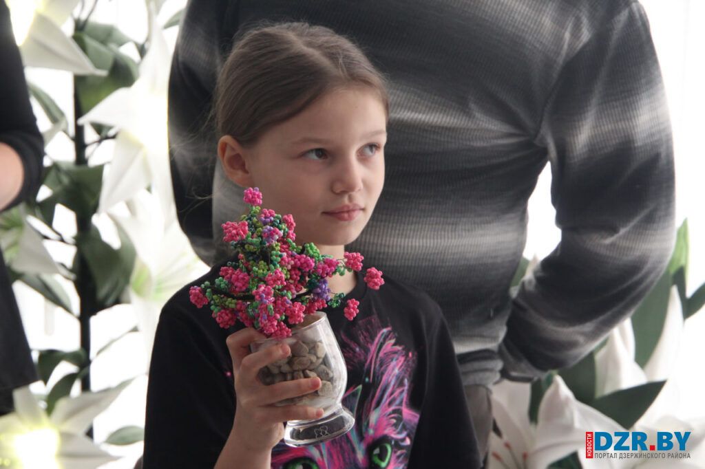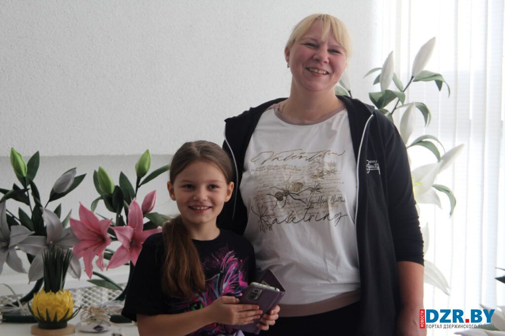 Выставку «Сказочная страна цветов» – можно назвать по-настоящему семейным проектом. Младшая дочь Татьяны, Ангелина, не только помогает маме вырезать лепестки, но и сама создает работы из бисера. На открытии выставки в Дзержинске она смело демонстрировала свои изделия.