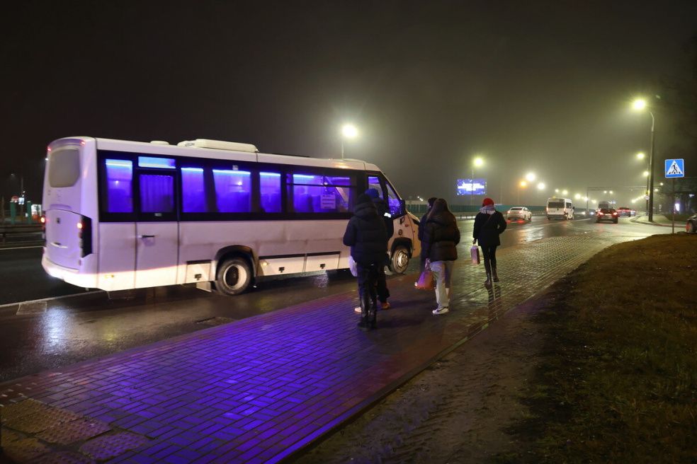 Начинаем рейд в столице — у станции метро «Институт культуры». Именно отсюда отправляются маршрутки, следующие в Фаниполь. Стрелка на часах приближается к 18:00, а длинная очередь из желающих выехать из Минска указывает, что этот маршрут весьма востребован. Несмотря на моросящий дождь, люди молча стоят друг за дружкой. Кутаются в шарфы и капюшоны, вглядываясь в таблички проезжающих мимо «бусиков».