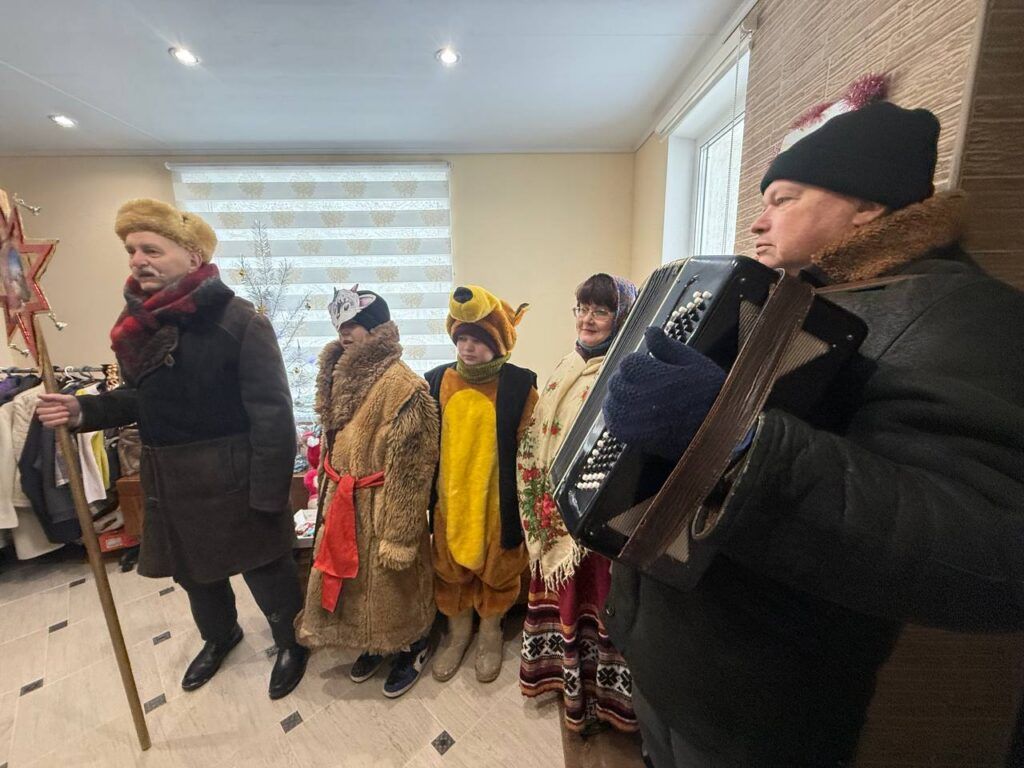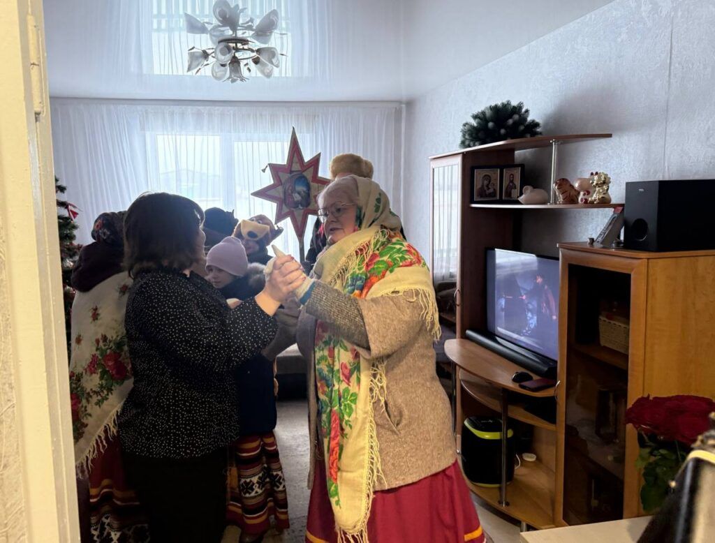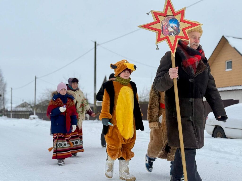 И вот во дворе звучит гармонь Владимира Акаловича. Возглавляет шествие Николай Сазонов – с Вифлеемской звездой в руках. Дети под чутким началом руководителя клуба, переглядываясь и улыбаясь, переступают порог дома. Там все дружно запевают песни, танцуют, поздравляют хозяев.