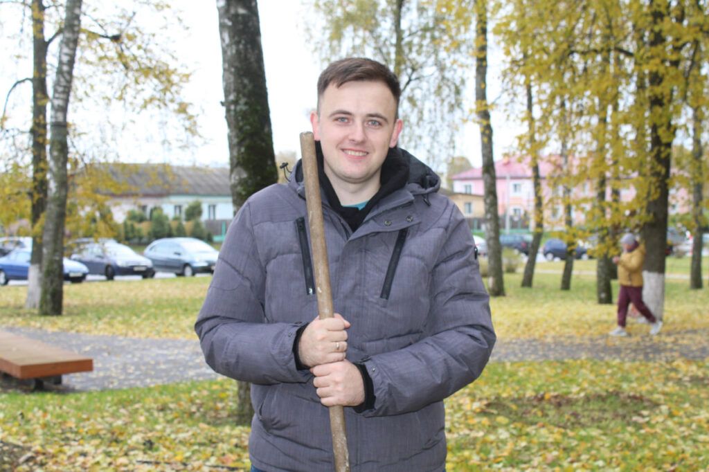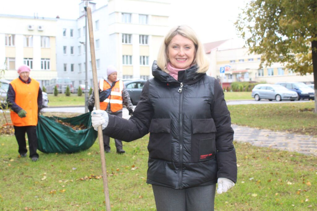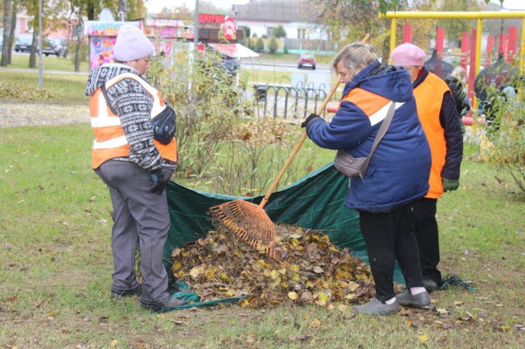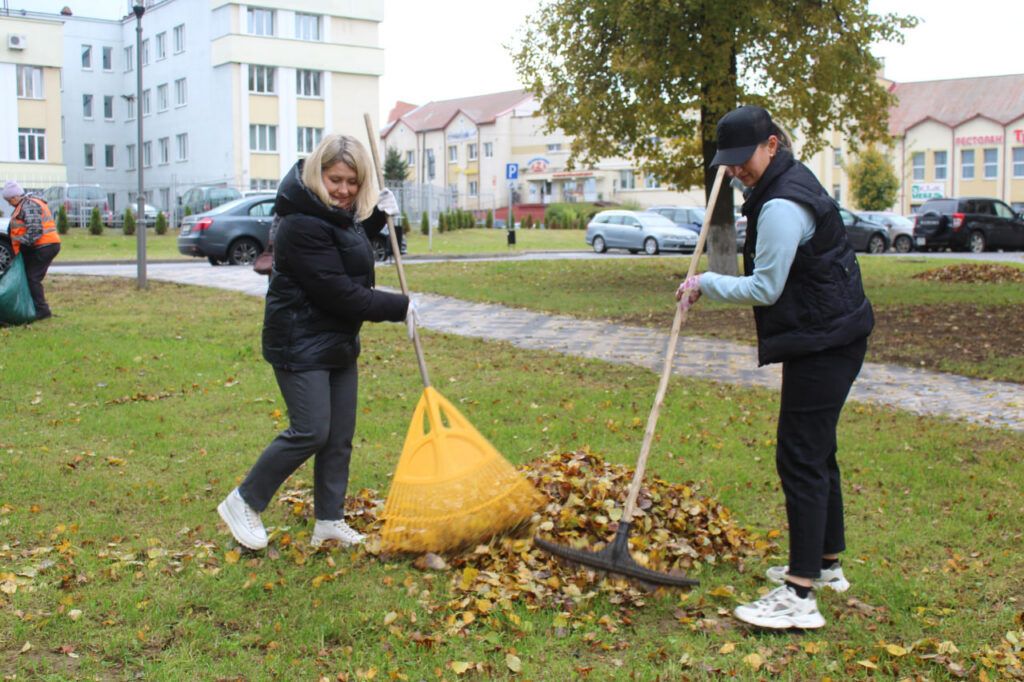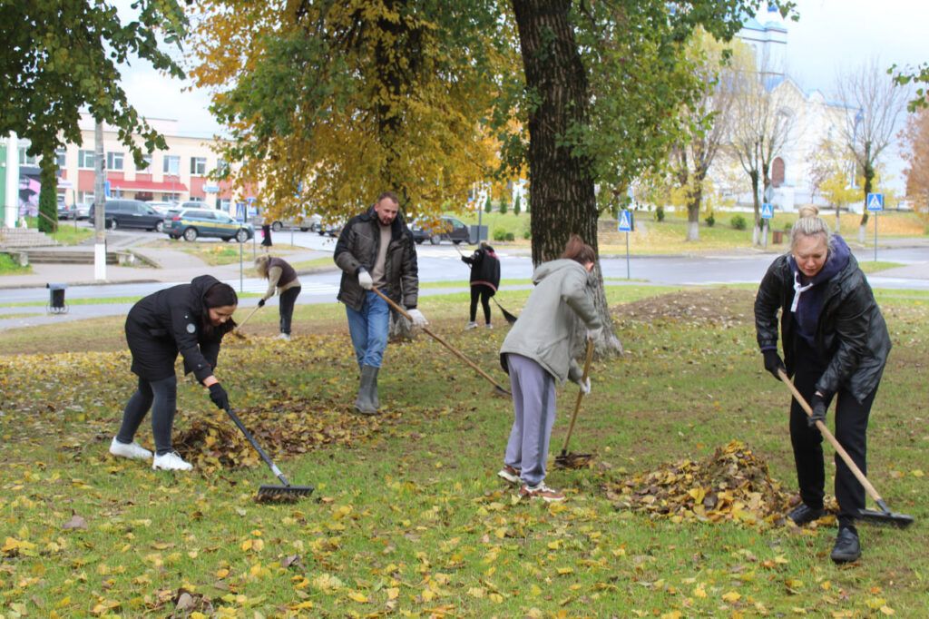 Фронтом работы определили сквер рядом с Дзержинским райисполкомом, где необходимо было убрать осеннюю листву.