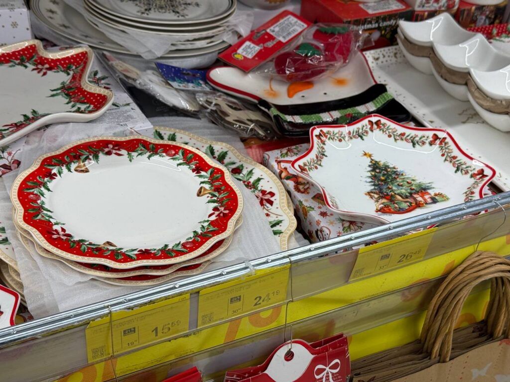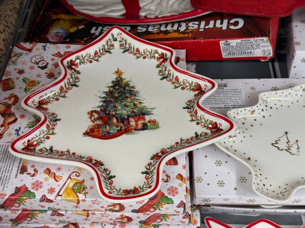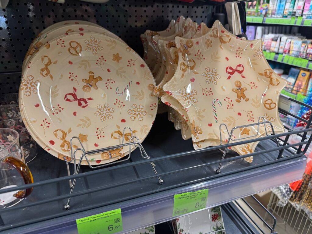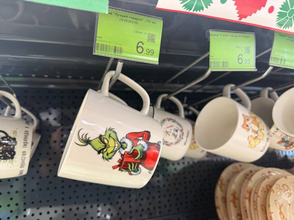 А теперь подберем к праздничному столу соответствующую посуду. Есть тарелки с новогодними принтами – 6,99 руб., сервировочные блюда – от 8,90 до 11,99 руб. Дизайн на любой вкус: от классических шишек, перевитых красной ленточкой до стильного хвойного леса. Особого шарма добавит небанальная кружка с Гринчем – находка для любителей современных рождественских историй.