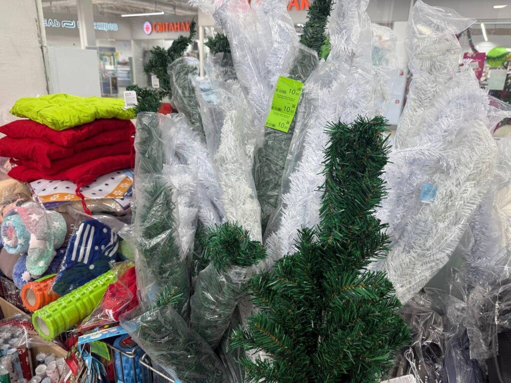 Например, небольшая искусственная ель (90 см) на подставке – 10,90 руб.