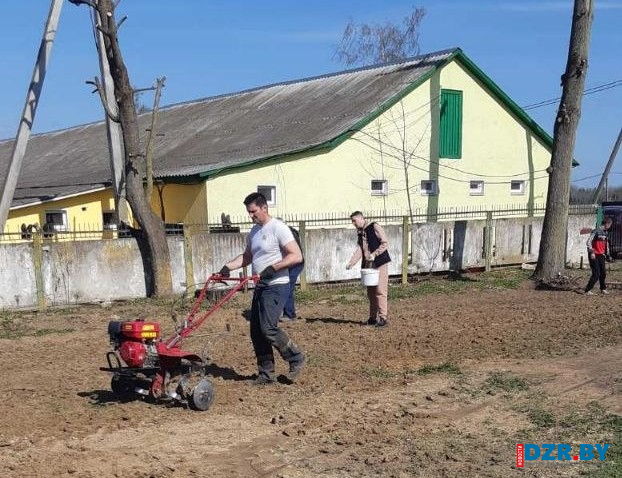 Кроме того, во время республиканского субботника работники культуры садили газон на площадке возле ДК.