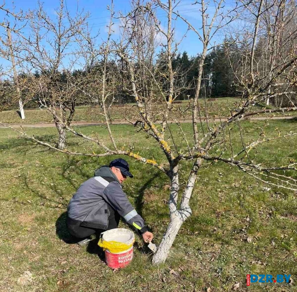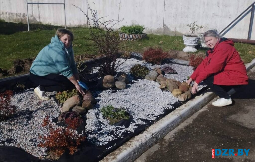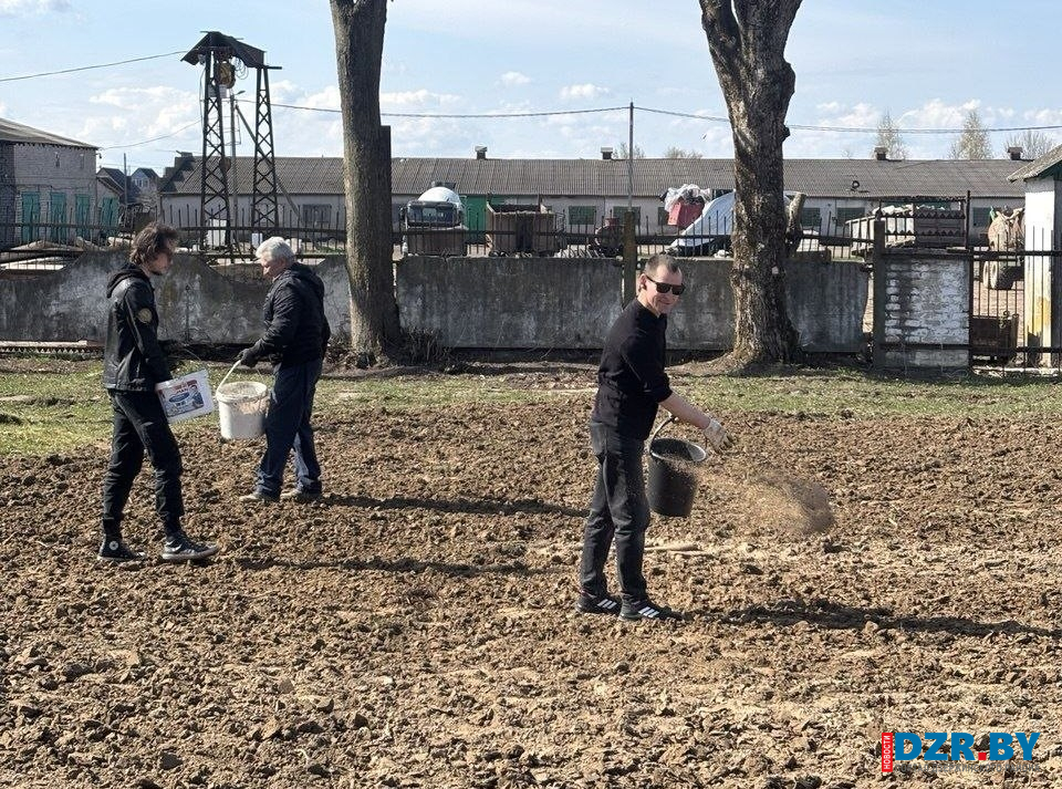 В яблоневом саду они аккуратно обрезали ветки и побелили деревья, а также подготовили почву посеяли газонную траву. высадили цветы и покрасили бордюры. Территория вокруг отдела по-настоящему расцвела.