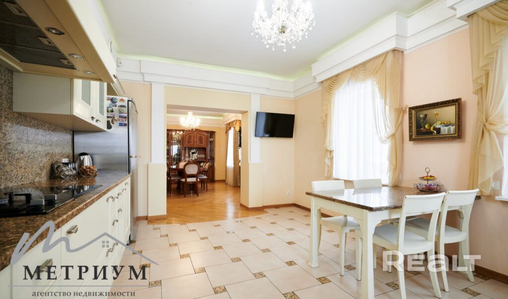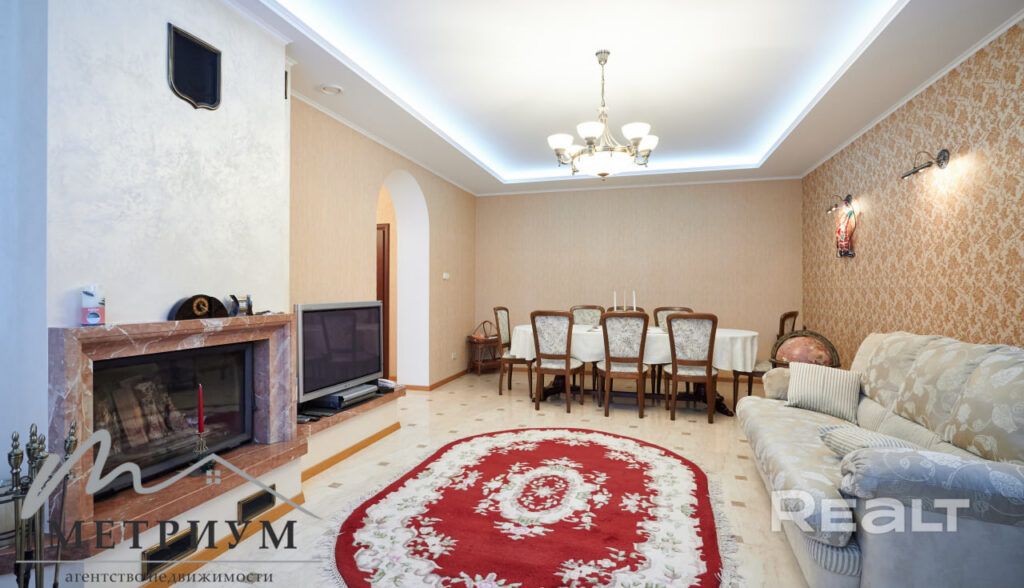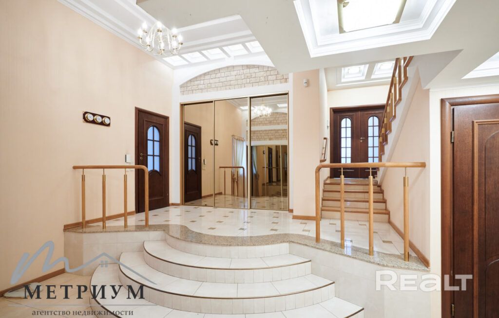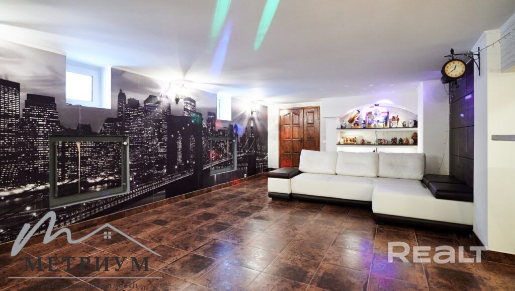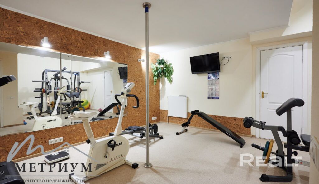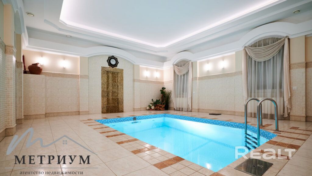 В большом доме оборудованы спа-зона, сауна, тренажерный зал, бильярд, гостиная, столовая, 10 комнат, подземный гараж на две машины. В объявлении уточняется, что все коммуникации современные: центральный водопровод, своя скважина, септик, оптоволокно, спутниковое ТV.
