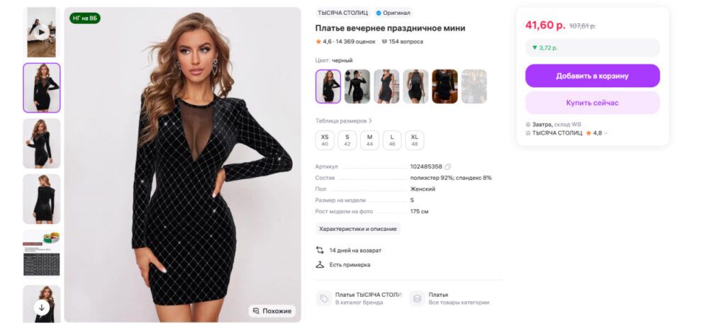 Главный тренд новогоднего образа – быть яркой. Это платье из сетки и стразов отвечает запросу на эффектный, блестящий лук для вечеринки. Хотя его состав (92% полиэстер) не претендует на роскошь, цена полностью оправдывает качество для одного-двух выходов. Вариант для тех, кто хочет выглядеть по-праздничному без ущерба для кошелька.