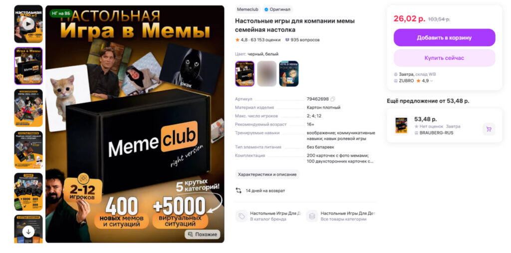 5. Настольная игра для компании «Мемы»