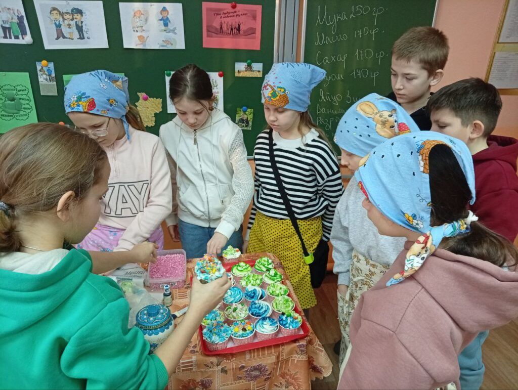 Сначала ребята получили общую информацию о том, что собой представляет профессия повара, а юная Вера Гармаза рассказала интересную историю происхождения кексов. Екатерина Владимировна познакомила мальчишек и девчонок с основами безопасности и санитарными нормами на кухне, после чего пришел черед самой интересной части – практики.