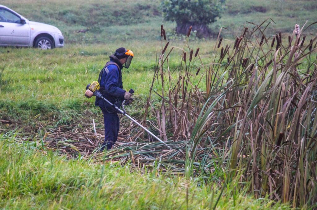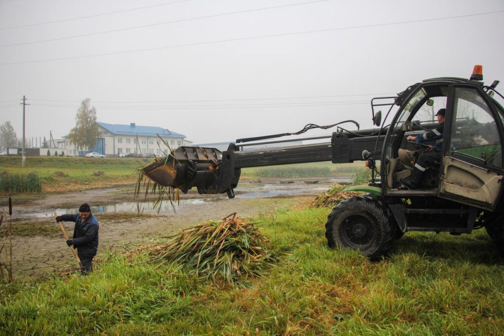 На месте трудились работники промышленных предприятий — «Амкодор-Семаш» и «Таспо-Ф». Они вручную и с помощью техники выкосили густые заросли камыша, которые захватили береговую линию, и тщательно очистили берег от накопившегося мусора: пластика, стекла и бытовых отходов.