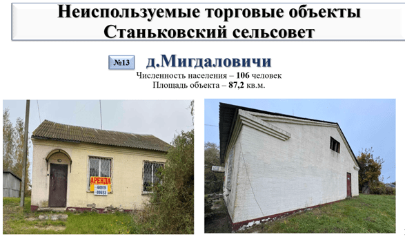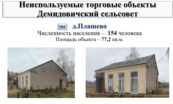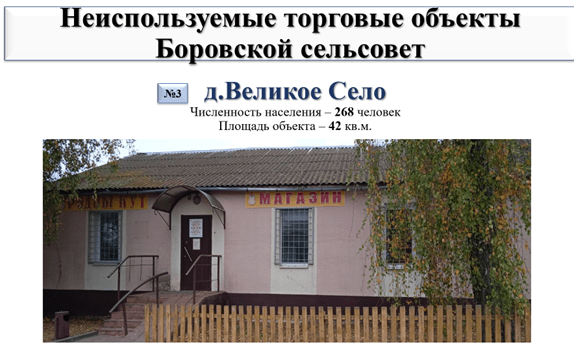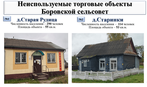 Так, в д. Старая Рудица, Старинки, Великое Село Боровского сельсовета находятся три неиспользуемых торговых объекта, которые появились в 2025 году.