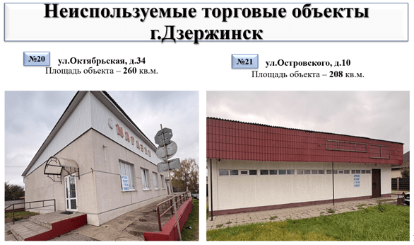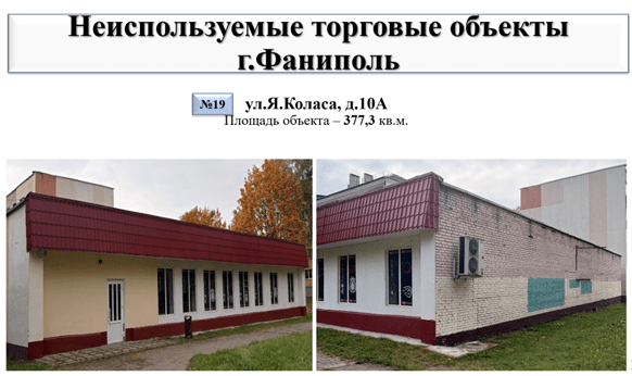 Два неиспользованных торговых объекта расположены в Дзержинске (ул. Октябрьская и Островского) и один в Фаниполе (ул. Я. Коласа)