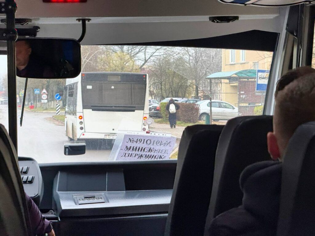 Несмотря на не самое популярное время для подобных поездок, на остановках в обратную сторону уже выстраиваются цепочки ожидающих транспорт пассажиров. Автобус подъезжает — и встречает недоуменные взгляды. Вводит в заблуждение и табличка на лобовом окне — «Минск-Дзержинск».