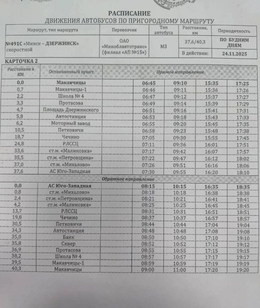 Самое раннее время выезда из Дзержинска — 6:20 (с Макавичиц)