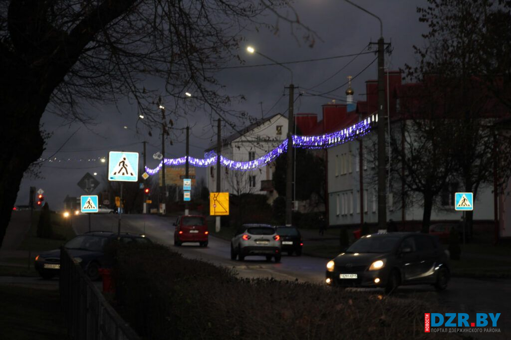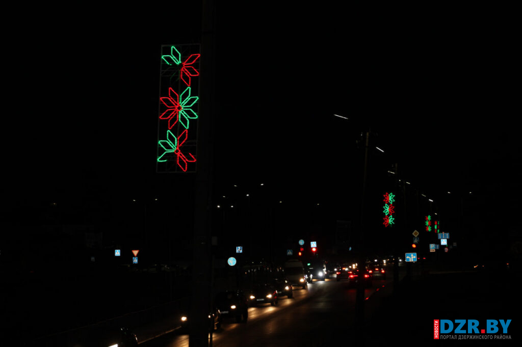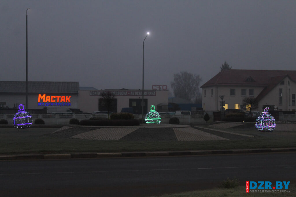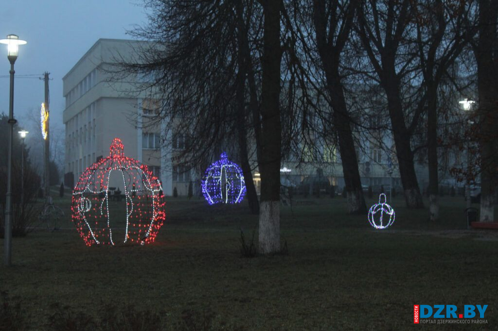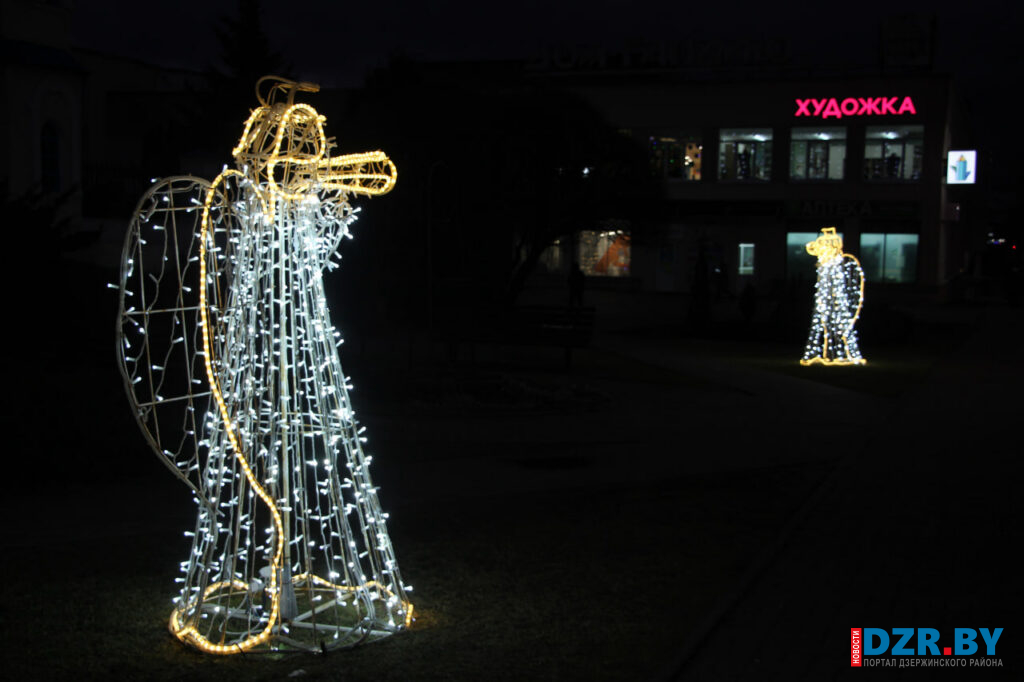 Многие традиционные украшения прошлого года останутся на своих местах: ангелы возле церкви, светящиеся ели у памятника Дзержинскому, фонари возле Дзержинского райисполкома, а также шары на въездном кольце и в сквере за райисполкомом.